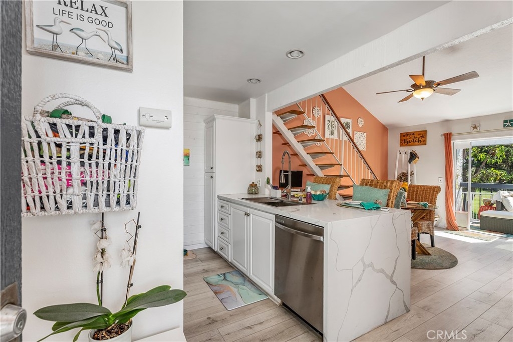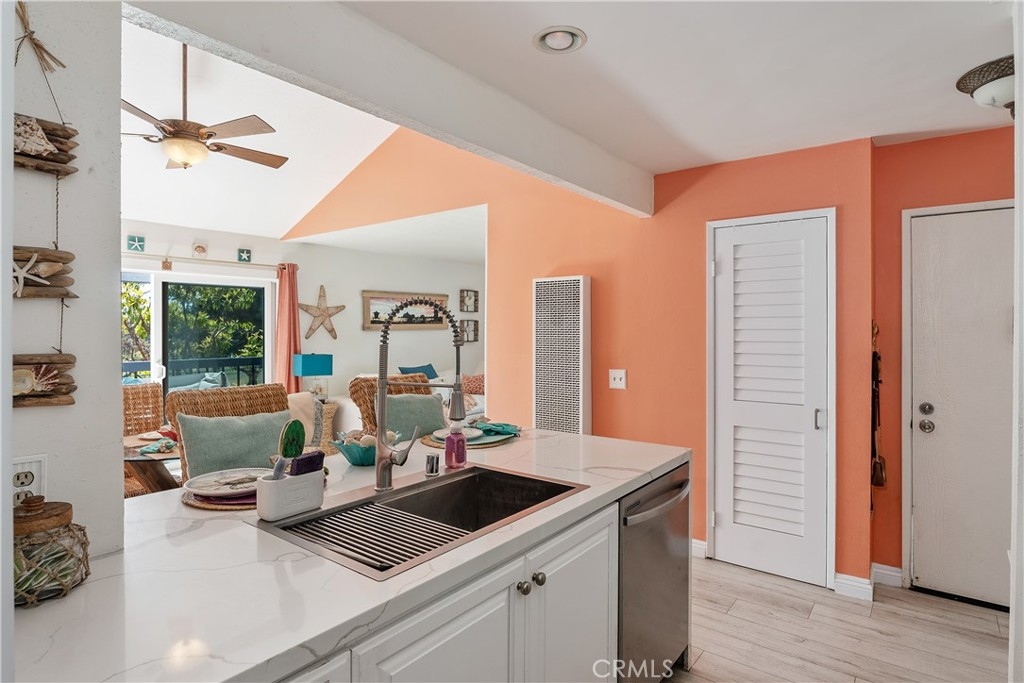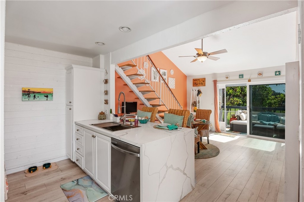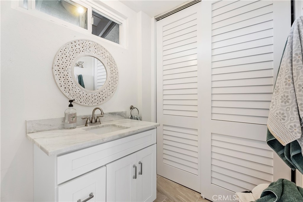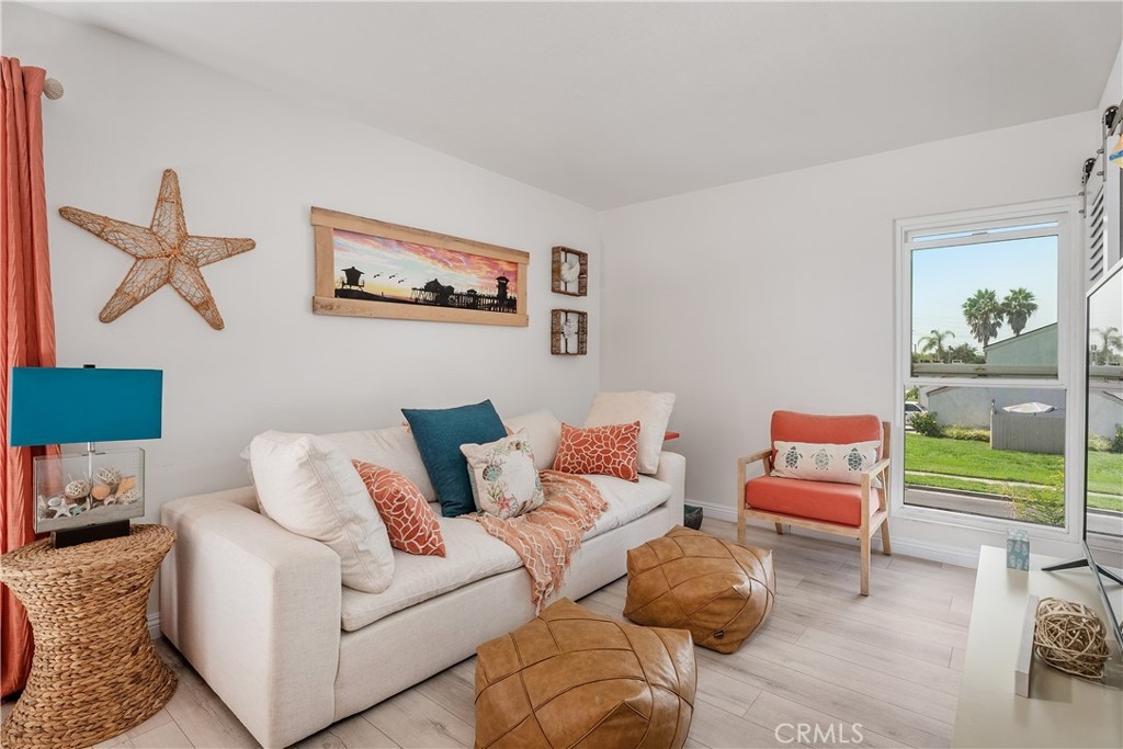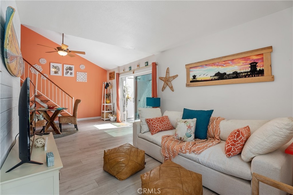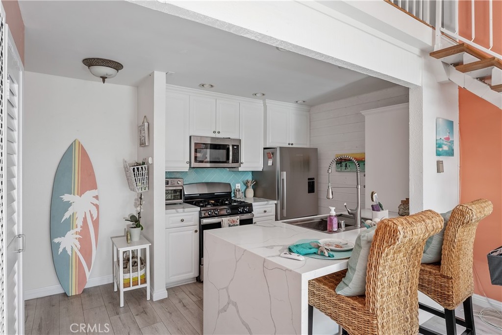 Fantastic Studio Condo with a Loft in Huntington Beach! Located in the charming gated community of Villa Pacifica. This end unit has a fantastic location overlooking Mc Callen Park. Great open concept floor plan with cathedral ceilings and lots of natural light and Luxury Vinyl Plank flooring throughout the first floor. This Beach Cottage features an remodeled kitchen with Quartz counters with a waterfall feature, white cabinets and stainless steel appliance. The kitchen flows into the living room which leads you to the oversized balcony. The private balcony adds additional living space and overlooks the park. The beautiful bathroom has been fully remodeled with a walk-in shower and a custom vanity. The loft adds additional living space- this can be used as a bedroom or an office area and has built in closets. Great carport location, very close to the unit. The Villa Pacifica community offers a swimming pool/spa, tennis court, sauna and on-site laundry. Located in the heart of Huntington Beach and is just minutes away from the Seacliff shopping plaza, parks, beaches and downtown Huntington Beach.