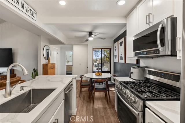 BEACH-CLOSE DESIGNER HOME IN GATED VILLA PACIFICA! Just about a mile from the sand and minutes to downtown Huntington Beach, Pacific City, Seacliff Shopping Center, and nearby parks, this beautifully updated upper-level condo offers incredible potential! Recently remodeled with designer finishes throughout, the open-concept great room features soaring ceilings, stylish new flooring, upgraded lighting and ceiling fans, and sliding doors that lead to a spacious private balcony – perfect for morning coffee or evening BBQs. The brand-new kitchen boasts sleek cabinetry, quartz counters, and stainless-steel appliances, while both bathrooms have been tastefully redone with modern fixtures and finishes. Thoughtful details include interior laundry, dual-suite style bedroom layout for privacy, and excellent storage. Gated Villa Pacifica offers resort-like amenities including a sparkling pool, spa/jacuzzi, sauna and tennis courts, plus secure parking with two assigned spaces and guest parking. Enjoy the best of coastal living in “Surf City” with easy access to the pier, beaches, restaurants, shopping, and award-winning schools – this turnkey home is ready for you to move right in and start enjoying your Perfect L3: Location, Luxury, Lifestyle!