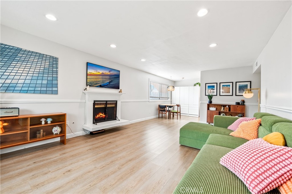 Welcome to coastal living at it's finest ! Rarely on the market this ground floor spacious 2-bed , 2-bath condo in one of the BEST locations . Light , bright, and airy with vinyl flooring , recessed lighting, smooth ceilings , cozy gas fireplace in spacious living room. Primary bedroom is huge with double closets and a view of your private yard. Kitchen is bright & open with plenty of cabinet space and lots of storage . This single story beauty is over 1100 sqft and offers a large back patio .Villa Warner is a gated pet friendly community which offers a large pool, spa, clubhouse, billards room , gym and extra storage, . Bike to the Beach , Enjoy the cool evening breeze & sunsets from your own backyard . Unit comes with 1 carport & 1 space. Villa Warner is known for having the largest floorplans in the area !