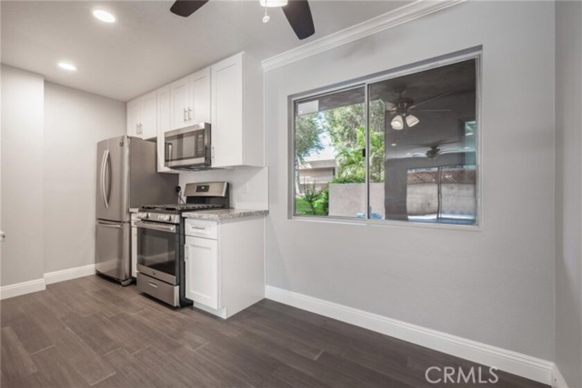 Newly Remodeled Condo on the ground floor! FHA and VA approved! Upscale appointments such as New Shaker Cabinets with Silver Canyon Granite in Kitchen and Bath! New brushed nickel fixtures, central heating, framed mirrors, hand scraped wood floors, textured ceiling, two tone paint, and canned lights! Water and Gas is paid by the HOA. Comes with a community storage cabinet. Move in ready, Turn Key! Villa Warner has beautiful grounds, a pool & spa, workout room, clubhouse, and is is pet friendly. The Ocean Breeze is only two miles as the crow flies!! The patio is HUGE and the wall can be raised an other 3 feet if desired.