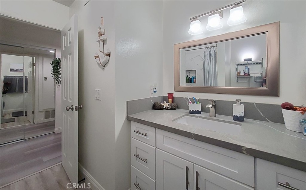 Welcome home to the highly sought after gated community of Villa Warner in sunny Huntington Beach! This tastefully updated Upper unit has brand new flooring throughout, recessed lighting, dual pane windows and sliding glass door which leads out to the balcony overlooking the fountain and green belt. Gorgeous updated bathroom has porcelain tiled shower, quartz countertops, a new vanity, new sink & cabinetry. This lovely home gets plenty of natural sunlight and cool breezes. Villa Warner has amazing amenities which include a large pool, spa, barbecues, clubhouse, meeting room, ping pong tables, gym, and is pet friendly! There is also an extra storage room available outside the condo. Close to all major shopping, grocery stores, entertainment and fwys, or bike to the beach!