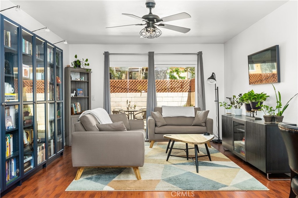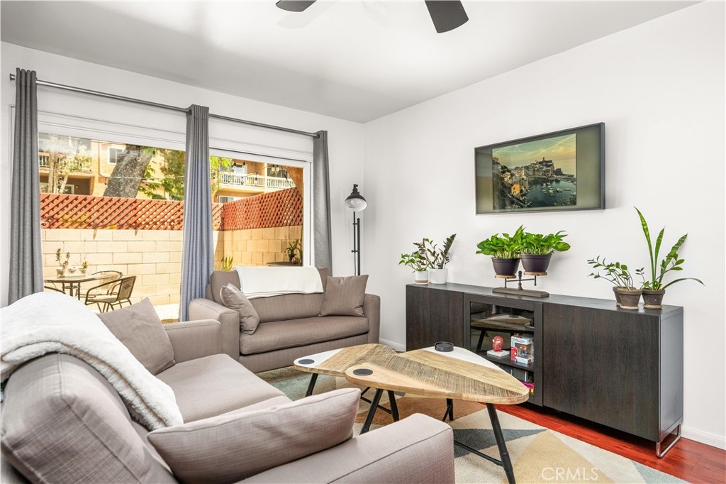 Welcome to this charming, turnkey home at Villa Warner—a sought-after coastal community providing unbeatable value *** This spacious, ground-floor corner unit provides abundant natural light and offers an open layout that feels both airy and inviting *** Step into a stylish kitchen featuring newer cabinetry, chic tile backsplash and stainless steel appliances *** The custom walk-in closet is a rare bonus, while modern laminate flooring and new ceiling fans & light fixtures throughout add a fresh, updated feel *** Step outside to your oversized private patio—complete with alluring string lights—perfect for morning coffee or evening wine, all with a peaceful park-like backdrop ideal for pets and nature lovers *** Additional perks include an extra storage unit, easy access to the community laundry room just steps away, and resort-style amenities including a sparkling pool, spa, gym, clubhouse, game room, BBQ areas, and lush greenbelts, all inside a secure, gated complex *** Located just minutes from Huntington, Sunset, and Bolsa Chica beaches, plus Bella Terra, Pacific City, top dining, and entertainment—you’ll love living where others vacation *** HOA dues include gas, water, and trash, making this home as practical as it is attractive *** Don’t miss your chance to own this well-maintained home in an amenity-rich community—IT WILL NOT LAST!!