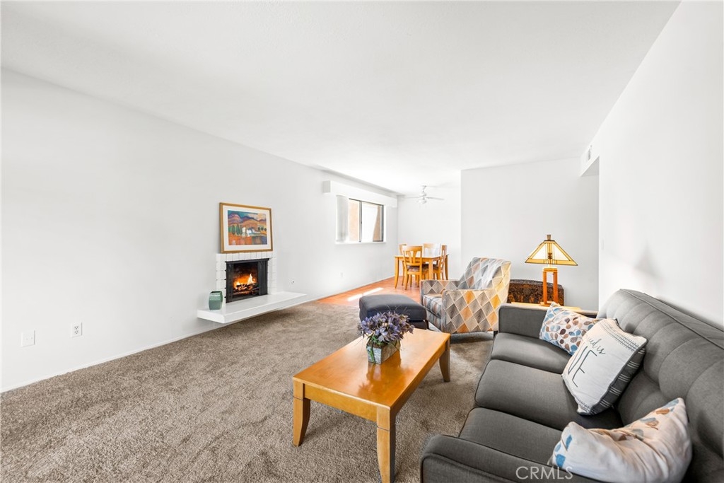 Beautiful Villa Warner condo with 2 large bedrooms 2 full baths !! Upper end unit with views of the greenbelt and lush landscaping. Enjoy the mornings from your quiet balcony or the evenings to wind down. Spacious living room with lots of wall space for your furniture, cozy gas fireplace, dining area off bright open kitchen , lots of sunlight and coastal breezes . Freshly painted & new carpeting throughout, lots of closet and storage space. Both bedrooms have their own bathrooms. You will not find a larger more spacious condo at this price point this close to the coastal area. The Villa Warner community is pet friendly and the complex offers pool, spa , gym, clubhouse, billards room all in a gated community