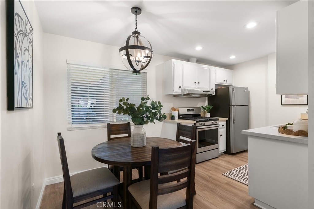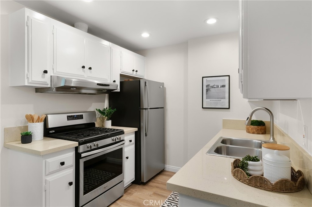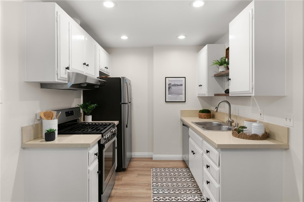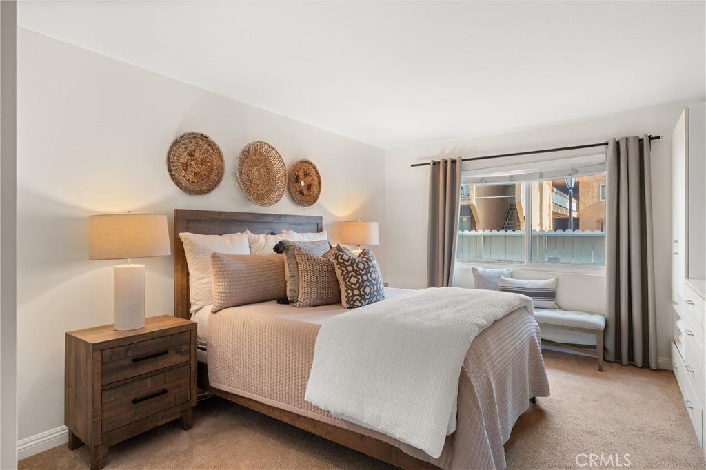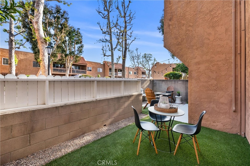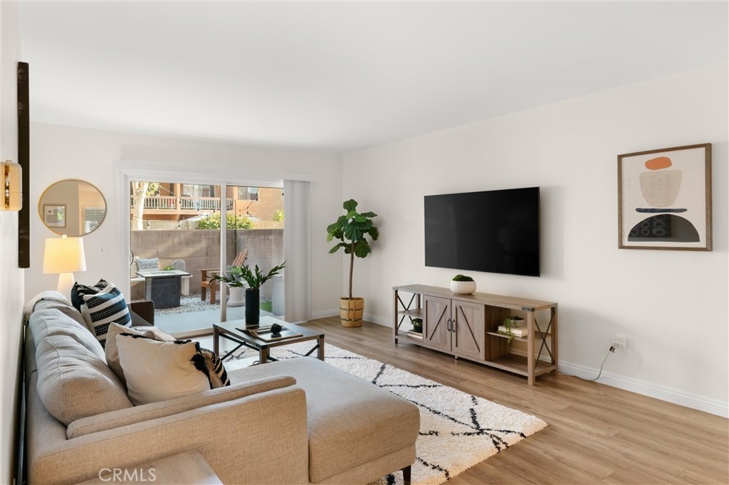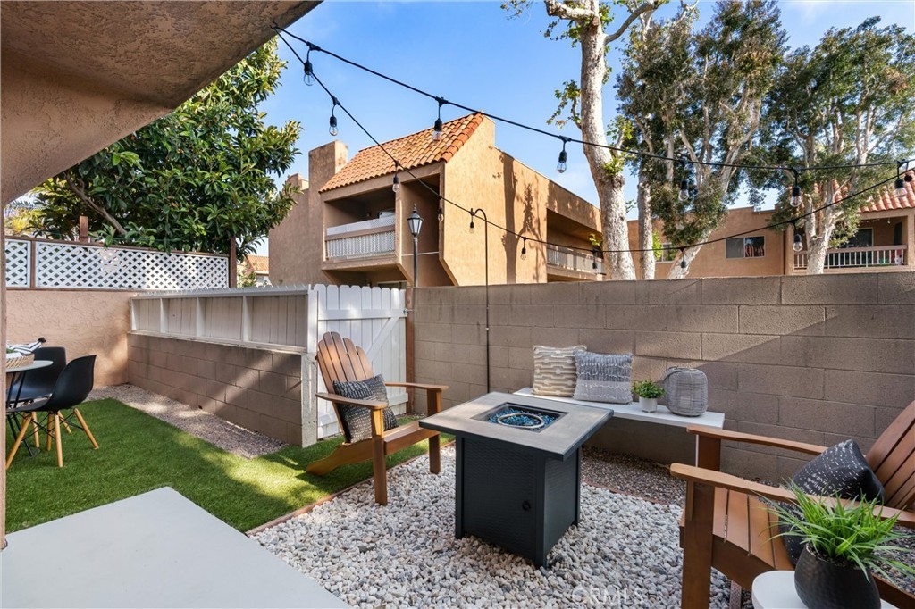 This highly sought after, turnkey condo is everything you’ve been looking for! Upon entering, you'll be greeted by an open floor plan, fresh paint, and beautifully updated vinyl flooring. The unit has been impeccably maintained with updated modern finishings, complemented by double-paned vinyl windows and smooth ceilings throughout. The bedroom showcases newly added custom cabinetry by California Closets, providing sophisticated and ample storage. This unit features a freshly renovated back patio, perfect for entertaining! It also backs up directly to the greenbelt making it highly convenient if you have a dog or pets. Villa Warner is a gated community offering an array of amenities including a large pool and spa, outdoor BBQs, a gym, billiard room, and clubhouse. Additionally, the complex is pet-friendly, and each unit comes with private storage. Also, this unique unit boasts not one, but TWO PARKING spaces, a rare find in the community! Don't miss out on the opportunity to own this exceptional property, where beach living meets convenience. Schedule a showing today and experience the epitome of coastal living in Huntington Beach.