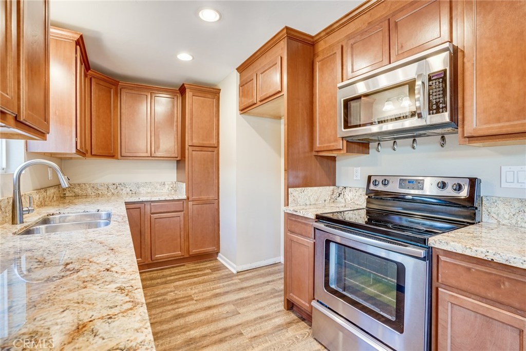 Beautiful and highly upgraded 3 bedroom townhouse situated in a prime location of Huntington Beach, just a 2.5 mile bike ride from the beach! This beautiful home features smooth ceilings with recessed lighting, dual pane vinyl windows, newer luxury vinyl flooring throughout, fresh paint, and a remodeled kitchen. The kitchen features newer beautiful granite counter tops, newer cabinets, and newer stainless steel appliances including oven/range with microwave hood and dishwasher. The eat in kitchen leads out to a tranquil patio with stamped concrete, which leads right out to your covered, assigned carport space. NEWER AIR CONDITIONER, Heater and ductwork installed. The community features a newly upgraded club house, great pool and spa area, tennis and sport courts for your use. Don't miss your opportunity to own a home in this amazing beach community.