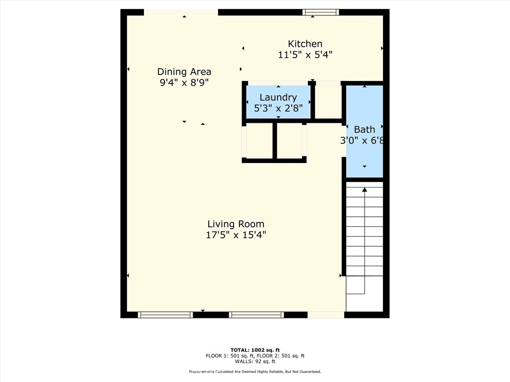 Laundry Gas & Electric Dryer Hookup, In Kitchen, Stackable, Washer Hookup