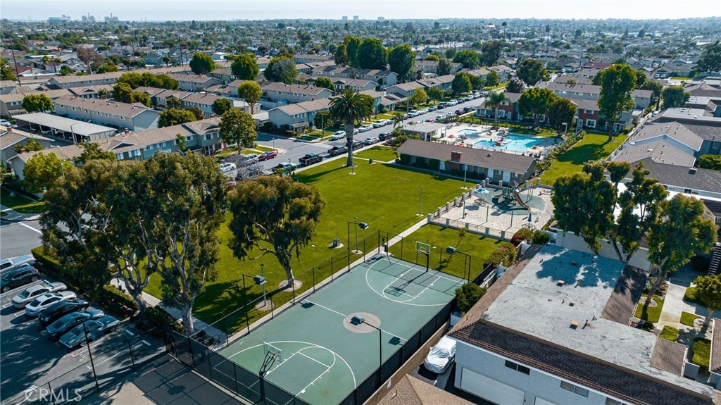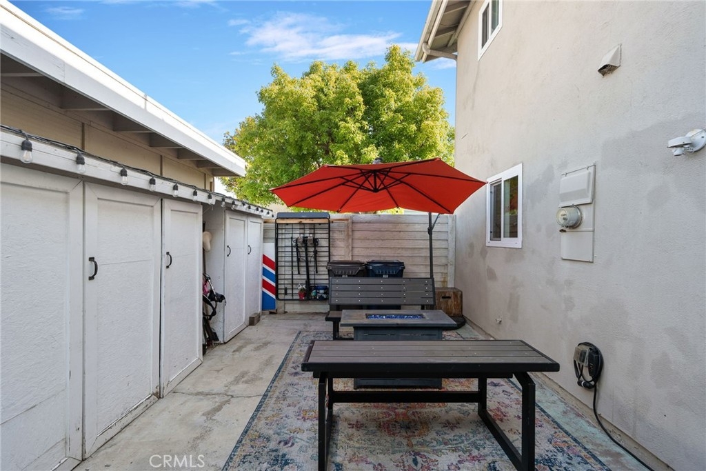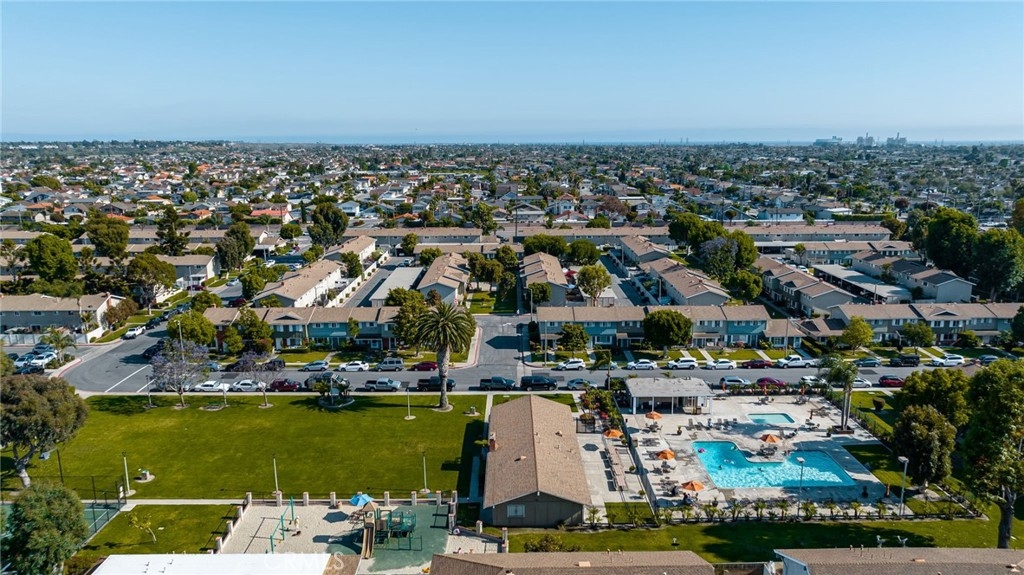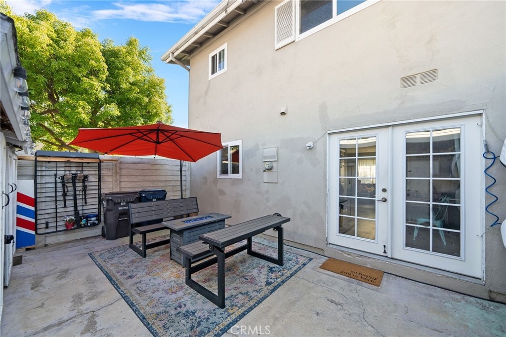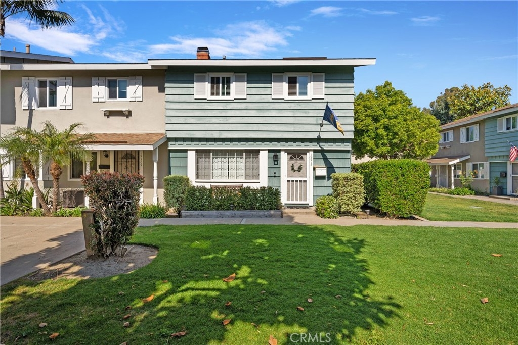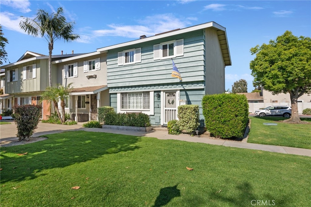 Location, location, location! This spacious 3 bed, 1.5 bath end unit townhome has every feature you could wish for. The luxury vinyl flooring downstairs brings elegance and charm. The living room features a fireplace, bringing charm to the space, and leads seamlessly to the dining and kitchen area. The kitchen had the original washer/dryer relocated upstairs, offering a sizable upgrade in storage for your kitchen, and the dining room showcases french doors that open to a peaceful enclosed patio, a perfect arrangement for entertaining or enjoying a night in. The patio boasts custom built storage, an excellent addition to any home, and has direct access to the carport, a superb feature for any electric vehicle owners, as the home includes a 240v charger and cord that reaches the carport spot! Walking upstairs, you will note the custom stair runner, and additionally find upgraded bamboo flooring on the second level. This community offers a pool, clubhouse, full basketball and tennis courts, play area, and large grass lawn, and is perfectly nestled within easy access to schools, parks, shopping, dining, and is a quick 10-minute drive to the beach! Don't miss your chance to start living your best Huntington Beach life!