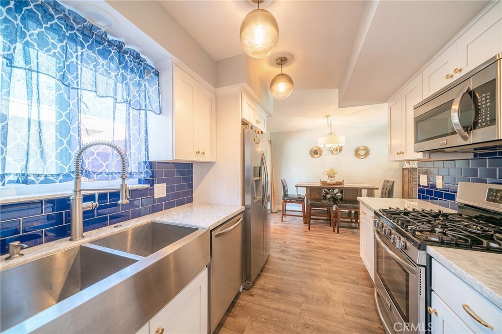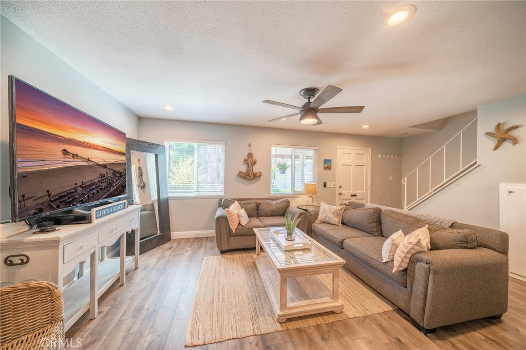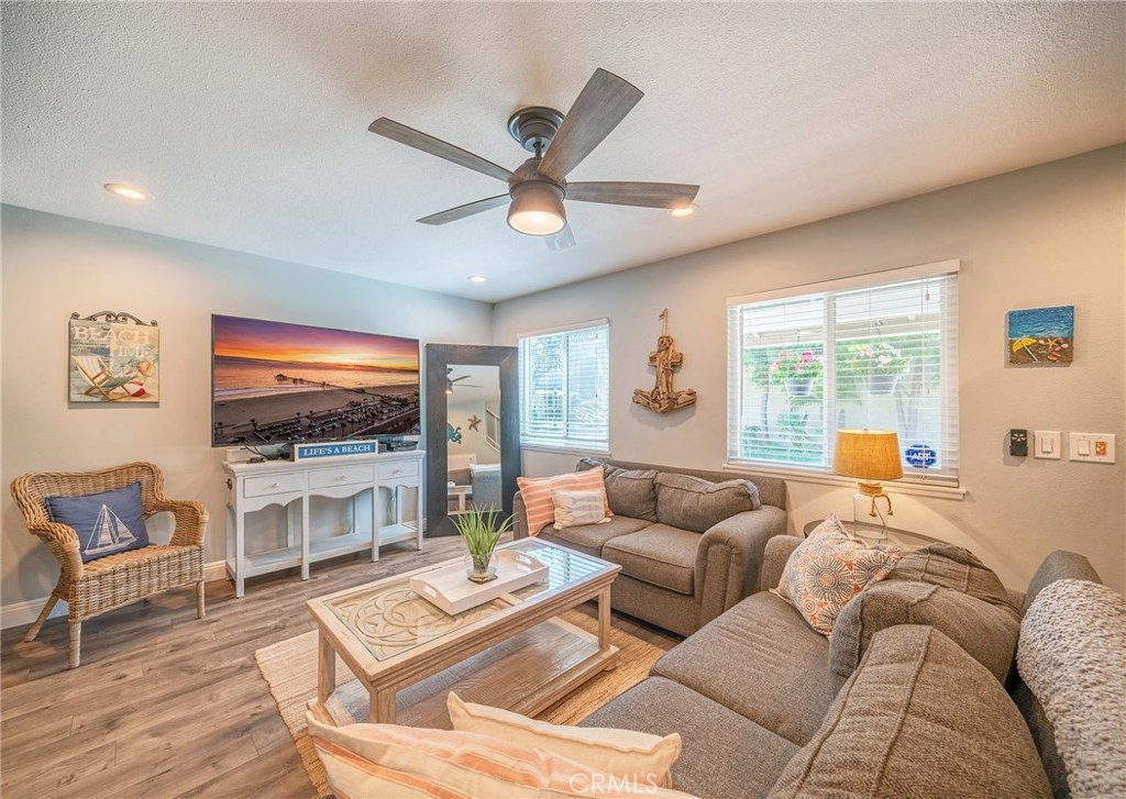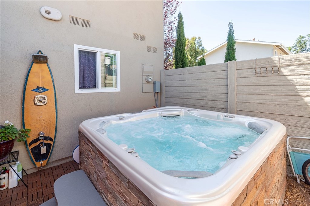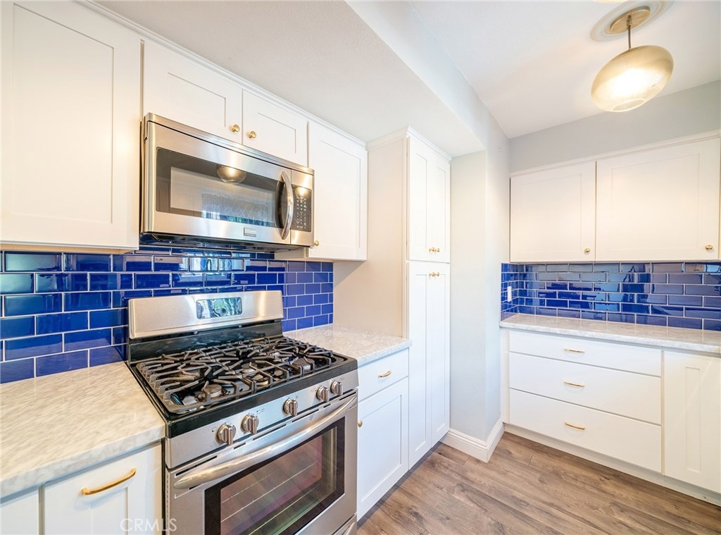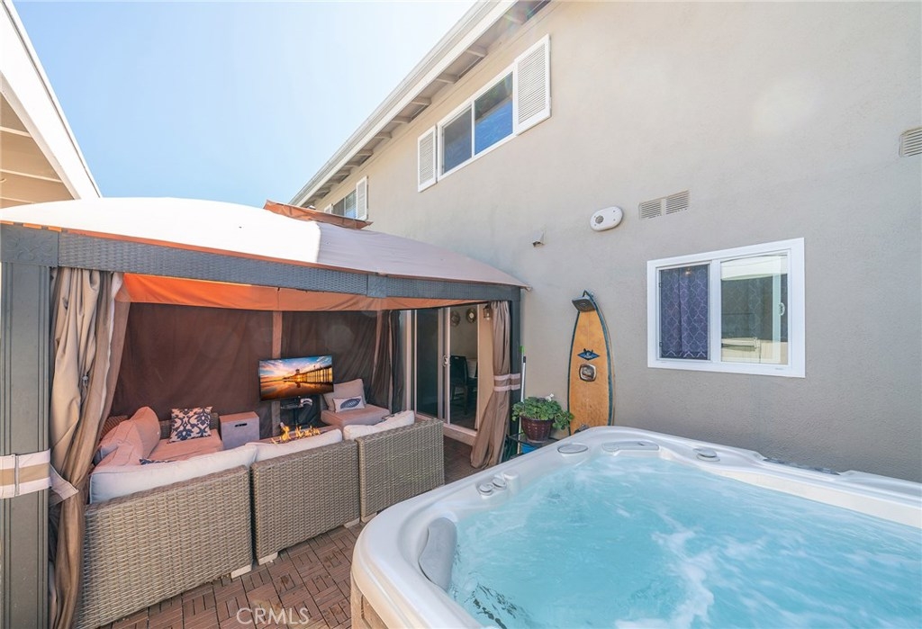 Amazing Property you have to see ! Pristine Condition ! End unit - Gorgeous Remodeled Kitchen with striking Cobalt Blue Subway Tile Backsplash ! Stainless Steel Appliances - Beautiful Wood like Flooring thru out - Recessed Lighting - Lots of Windows with Wonderful Natural Sunlight ! Back Patio has an awesome Sparkling Jacuzzi ! Plus a large Cabana - You will feel like you're at a 5 Star Resort - Ceiling Fans in all bedrooms - Mirrored Wardrobe doors - Inside Washer/Dryer - A Community that offers all the ammenties you could ever ask for - Pools, Jacuzzies, tennis Courts and more ! Just down the street from the Beach, Huntington Beach Pier, Main Street, Pacific City, Plus Fantastic Shopping and Restaurants and so much more !!!
