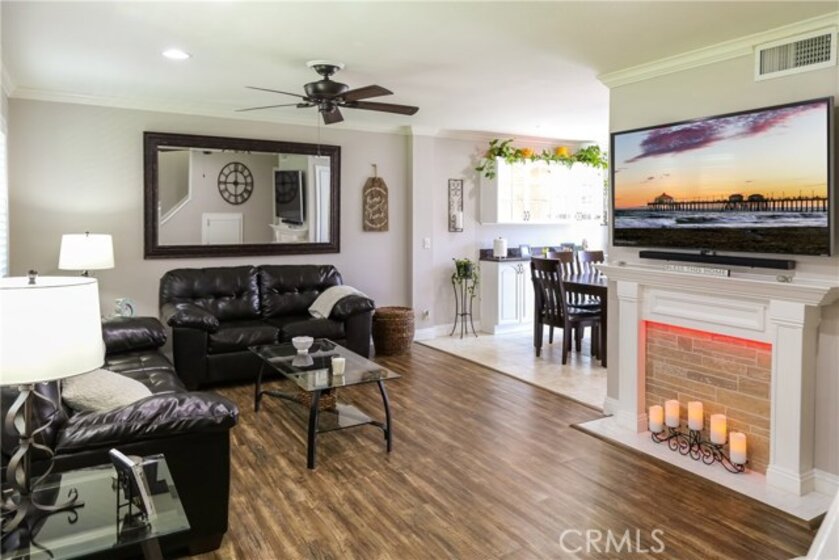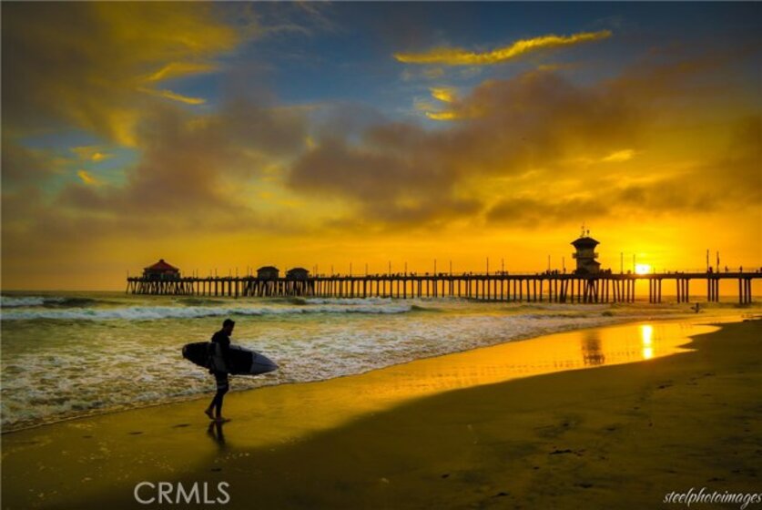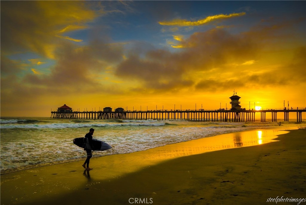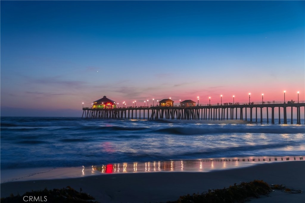 Elegance at an affordable price! Wonderful location just under 3 miles to the renowned beaches of HB. Nearly every aspect of this Village Townhome has been thoughtfully enhanced. The well maintained grounds and exterior provide a wonderful approach to the home with tastefully landscaped front planters on a drip system & an inviting porch with solar porch lights. Upon entering the home, you will be impressed by the beautiful, custom faux fireplace with tile hearth, Phillips Hue Lighting, intricate mantle, beautiful vinyl plank floors throughout, upgraded crown molding, baseboards & window trim, energy efficient recessed lighting with dimmer switches & designer paint. Mount the TV over the mantle & no wires show due to the recessed outlets, in-wall wiring & cable ready setup for Frontier or DirecTV. The kitchen boasts granite countertops, newer Kenmore stainless steel appliances, large single basin sink with Moen fixtures. The washer & dryer have been relocated from the kitchen to the downstairs utility closet. Upgraded bathrooms with newer vanities, granite countertops, sinks & fixtures. Additional upgrades & features include: strategically located central A/C 2 years ago, newer dual pane vinyl windows & slider, inward opening upstairs windows for easy cleaning, phone app controlled thermostat & Hue Lighting, backyard pavers, fences, & wood deck. Community pools, playground, clubhouse, basketball & tennis courts with low monthly dues! A truly special opportunity awaits you!