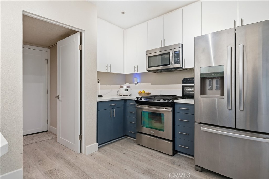 This One Will Not Last — A MUST SEE! Single Level • Fully Remodeled • Private Corner Location This beautifully remodeled single-level home is tucked away in a private corner of a fantastic community. Finished in soft neutral tones of grey and white, this charming residence features 1 Bedroom, 1 Bathroom, a Laundry Room, and an Oversized Attached 1-Car Garage. As you enter, you're greeted by luxury grey vinyl plank flooring throughout, complemented by grey walls and crisp 5" white baseboards. The living room offers a beautifully redesigned fireplace with decorative white tile and an upgraded ceiling fan. The rooms are open, large, and spacious. The updated kitchen features plenty of cabinetry with adjustable shelving, white quartz countertops with soft grey veining, stainless steel appliances, a large stainless farmhouse sink, French-door refrigerator with in-door water and ice, gas range, microwave, and dishwasher—everything needed for a highly functional and stylish kitchen. Just off the kitchen is a dedicated laundry room with standard-size stackable washer and dryer, abundant storage, and direct access to the oversized garage. An additional assigned parking space is conveniently located directly behind the garage, along with guest parking. The very large bedroom features wall-to-wall mirrored wardrobe doors, a double skylight, and windows that bring in exceptional natural light. The spacious dual-sink bathroom is beautifully upgraded with tasteful finishes. The home also includes recessed LED lighting throughout. Community Features Wrought-iron gated entry with courtyard water feature Pool & spa Workout room Community BBQ area Recreation room Pictures do not do this home justice—this is truly a MUST SEE to appreciate everything it offers! Conveniently located near downtown Huntington Beach, shopping, dining, entertainment, and the famous Huntington Beach Pier.