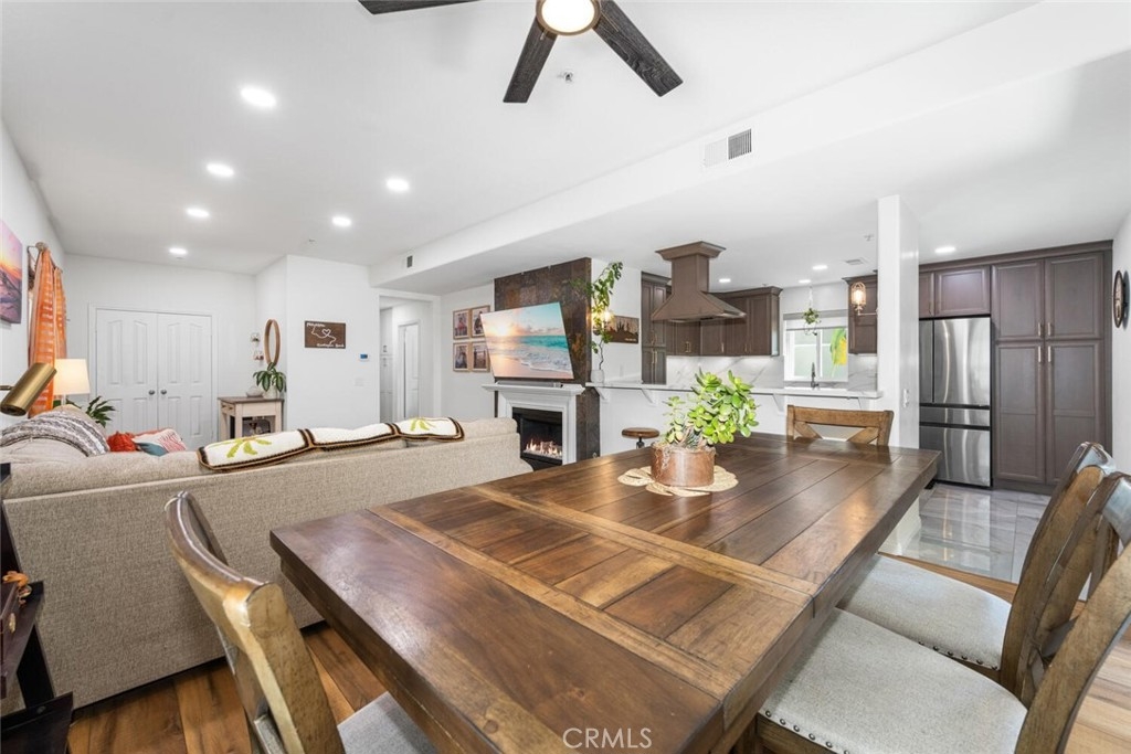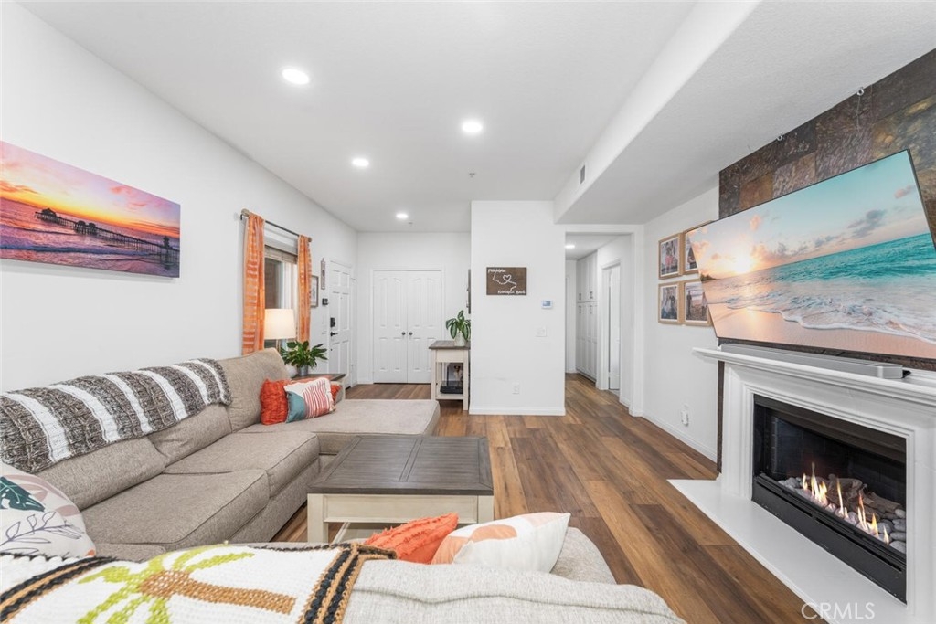 Live the California dream with sand, surf, and sunsets just steps from your door. Perfectly positioned along Pacific Coast Highway, this ground-level Huntington Beach condo captures the laid-back coastal lifestyle with a modern, upgraded twist. Step inside and you’ll instantly feel at home in the open floor plan, highlighted by newer luxury vinyl plank flooring, a newly renovated gas fireplace, and natural light pouring in through brand-new windows with custom treatments. The kitchen is a total standout — thoughtfully redesigned with pull-out shelving, under-cabinet lighting, a gas stove with a custom vent hood, sleek countertops, and bar seating that flows effortlessly for entertaining. There’s even a wine fridge for those impromptu happy hours after a day at the beach. Through the new sliding glass doors, your private patio becomes an easy extension of the living space — perfect for morning coffee or watching the colors of the evening sky. Both bedrooms offer ensuite bathrooms for comfort and privacy, while the spacious primary retreat features a deep walk-in closet and serene ambiance you’ll love coming home to. With a brand-new HVAC system, every detail has been considered for effortless year-round living. Simply walk across PCH to the sand or the walking and biking trails. Head to Main Street, Huntington Beach Pier or the popular 2nd & PCH Shopping plaza all just minutes away! Whether you’re searching for your full-time beach home or a coastal weekend escape, this turn-key condo delivers the best of Huntington Beach — ocean air, walkable access, and a lifestyle that feels like vacation every day.