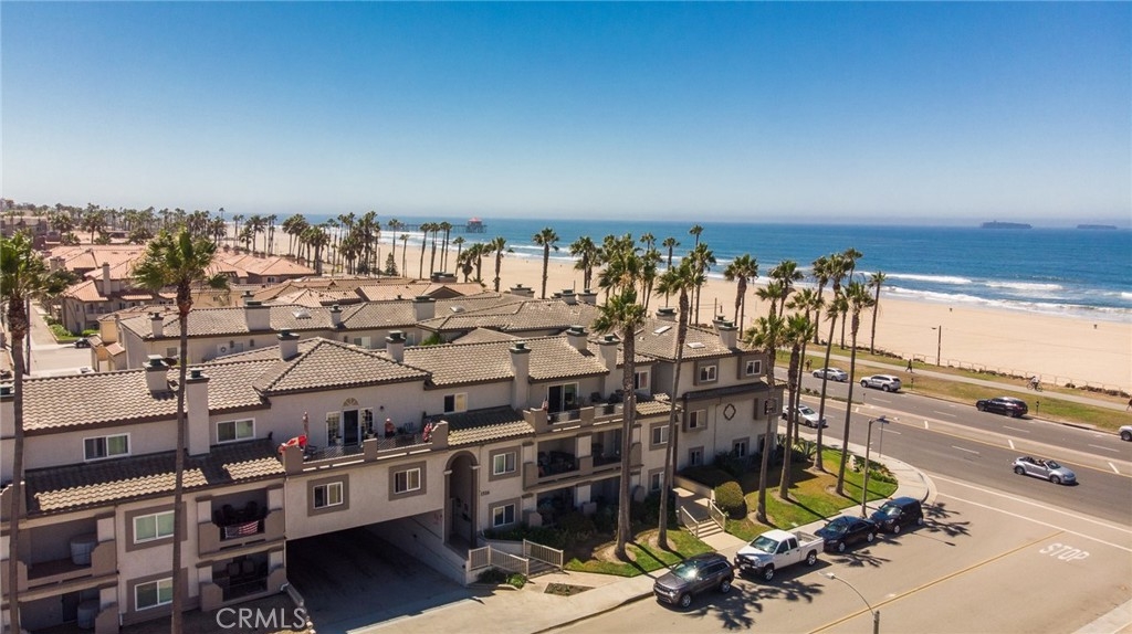 The Oceanview condo in Huntington Beach you have been waiting for. Located on PCH, just steps from the sand, this corner unit 2 bedroom 2 and 1/2 bath home has been transformed into the perfect beachside oasis for the modern buyer. This spacious floor plan and coastal colors provide the right balance between beachside chic and tranquil living from the light and bright interior to the wrap-around marble fireplace and more. From top to bottom this home has been tastefully transformed into the perfect beach home. The kitchen offers stainless appliances, granite countertops, a glass tile backsplash, and pendant lighting. Granite flooring flows throughout the main floor with access to the half bath and full-size laundry area. Light hardwood floors lead up to the 2nd floor featuring a spacious master bedroom with a walk-in closet, ensuite bathroom, and plenty of storage. The second bedroom is generous in size and also includes an ensuite bathroom. The best part of this home is the ocean views from both downstairs and upstairs patios. Sit and enjoy your morning coffee while watching the waves roll in or enjoy a cocktail on the master balcony watching the sunset into the glistening horizon. This unit also comes with 2 assigned parking spaces and has access to community amenities such as a pool, jacuzzi, and clubhouse. Whether this is your full-time residence or a weekend getaway, this condo has it all.