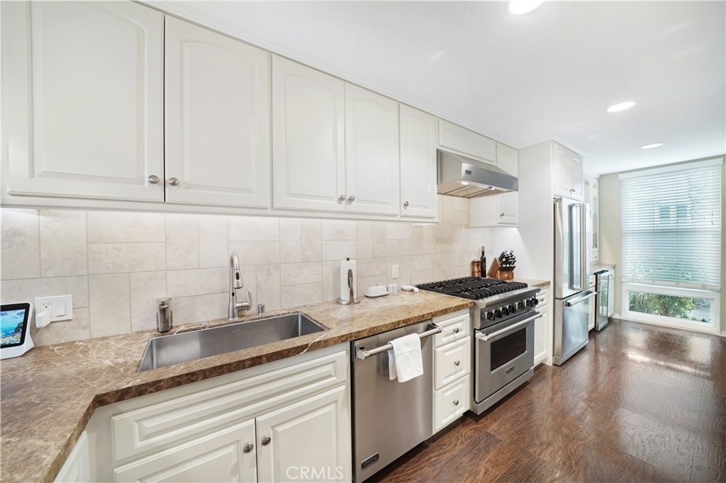 Welcome to your own slice of paradise in Huntington Harbour. This charming condo in Weatherly Bay has been completely updated and remodeled using on-trend design with a fresh coastal flair. The home boasts a spacious interior with over 1900 SF of living space, including a main floor bedroom (currently an office with expansive built-ins) and full bath. The kitchen showcases upgraded Viking appliances, marble counters, and endless storage with a beautiful peninsula eating area flowing through to the dining and great rooms. Floor to ceiling windows with French sliders open out to the patio oasis, complete with blooming mature Plumerias, a lemon tree and lush foliage creating the perfect “Island Style” atmosphere. Upstairs features two guest bedrooms, a full bath, and a master suite with a gorgeous spa bathroom, three closets, a fireplace, a personal balcony and ample storage space. This unique model has been carefully designed to create a functional space with high-end accents and décor throughout. The two car garage offers epoxy floors and built-in storage. This condo also comes with a 35’ boat dock, and access to the community pool and private tennis courts. Bolsa Chica Nature Preserve, the beach, and excellent restaurants and shops are just a short walk from your front door.