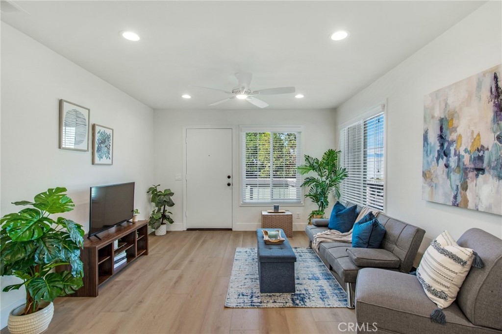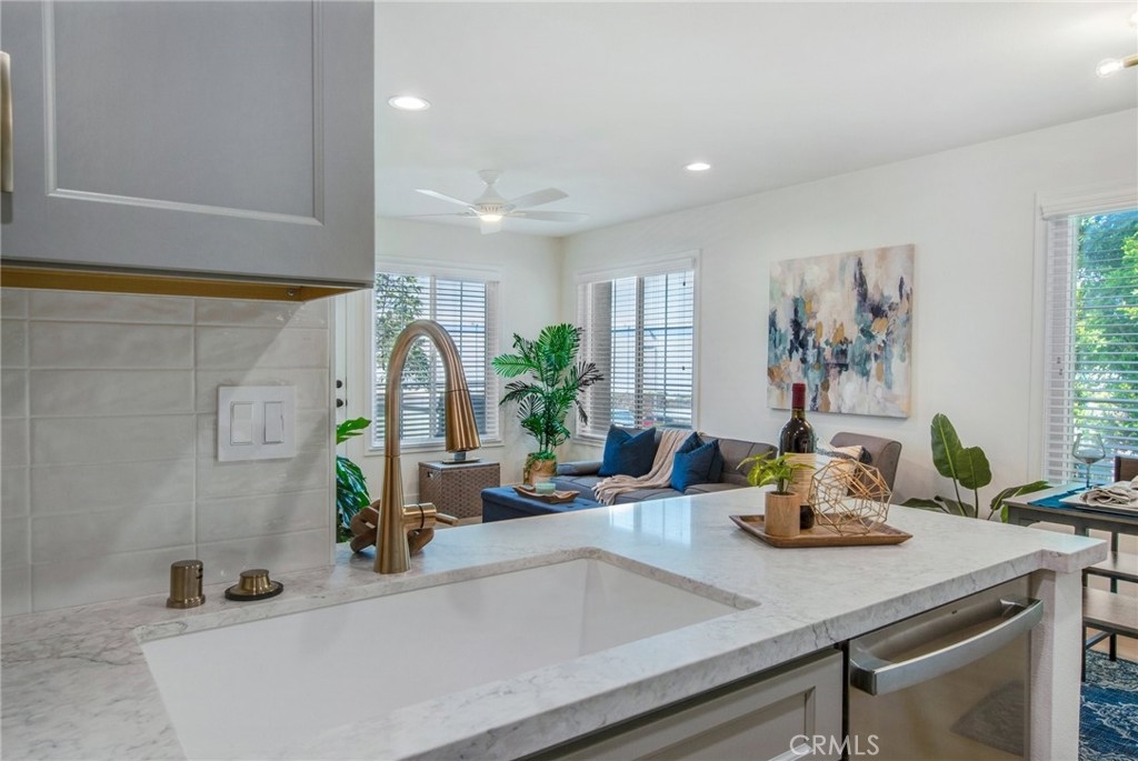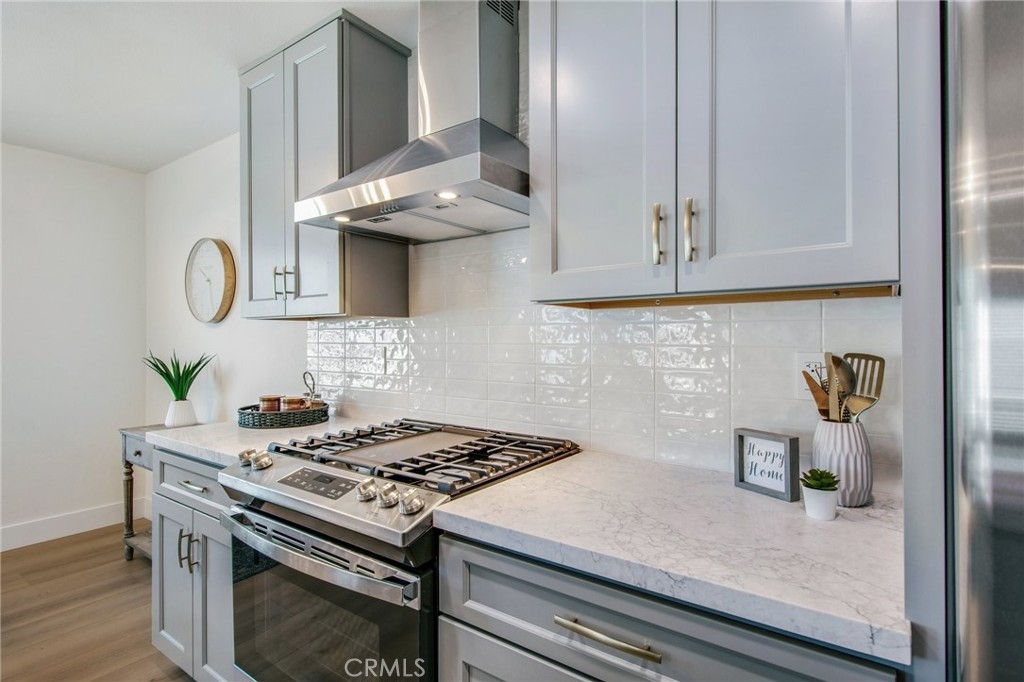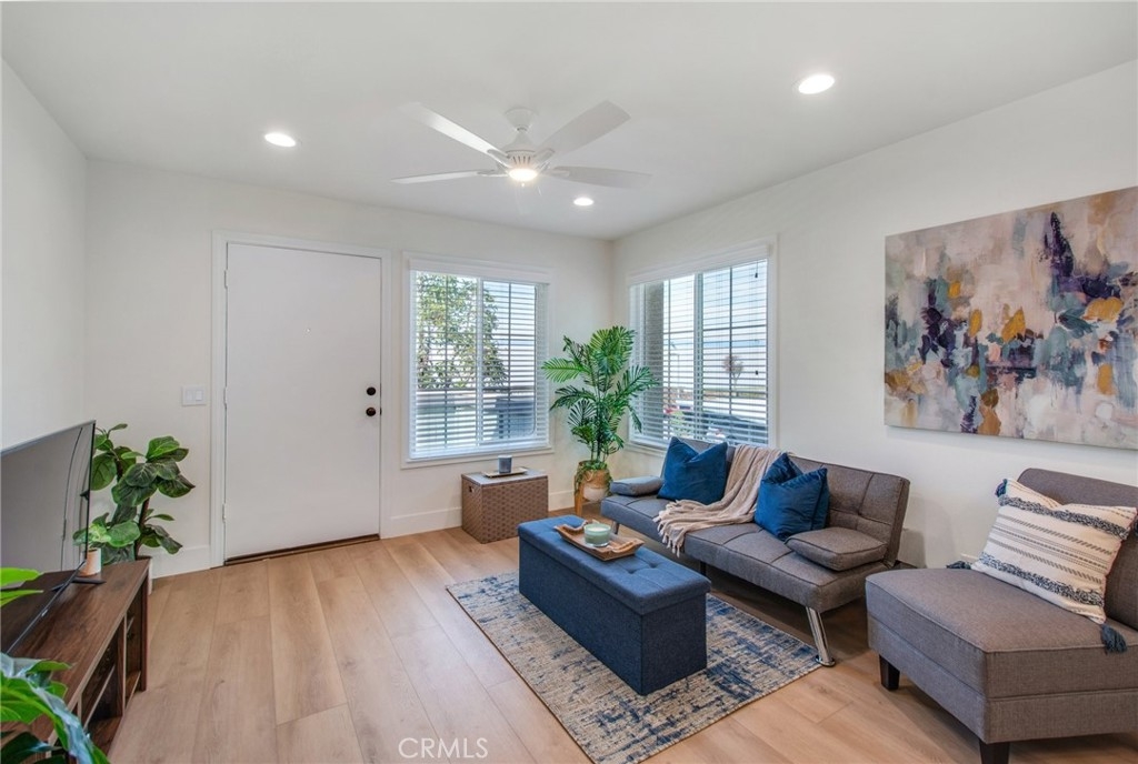 **WOW -55+ IN HUNTINGTON BEACH AREA -NEAR 5 POINTS/TRADER JOES! This hidden gem is in the quiet 55+ community of Windward Cove - A GATED Community of only 98 homes and Gate access to TERRY PARK, which is adjacent to the community! END UNIT with EXTRA Large DECK area on "2ND FLOOR" level as you enter into the 2br/1ba -NO ONE ABOVE! Home includes covered carport parking space. Security screen door front entry. This home has been BEAUTIFULLY and Completely UPGRADED THROUGHOUT!! FRESH coat of paint, NEW 5-inch Molding throughout home, NEW ELEGANT WARM BLONDE LUXURY VINYL PLANK flooring throughout main living spaces and NEW carpeting in bedrooms. LARGE Primary including LARGE walk-in closet and mirrored wardrobe closet and a second bedroom including mirrored wardrobe and situated well to use as either a guestroom or home office. RENOVATED Kitchen including Grey Shaker Style Kitchen Cabinets with Quartz countertops, NEW suite of GE kitchen stainless-steel appliances INCLUDES Refrigerator, Gas Range and Vent Hood, Dishwasher, Deep White Quartz Sink with Delta Champagne-Bronze Faucet, Custom Porcelain Tile Backsplash. NEW appliance Electrical "Circuits" added for Kitchen Appliances. NEW Front load Stackable Washer and Dryer. RENOVATED Bathroom with Newly Porcelain-Tiled tub Enclosure and NEW LED lighted/mirrored medicine cabinet with ample storage. NEW Custom Window Coverings over Vinyl Dual-paned windows. Recessed Lighting in Living room area, Kitchen and Bathroom. Ceiling Fans in each bedroom and Main living area. This Second Story SINGLE LEVEL Condo also includes Vaulted ceilings that give an OPEN and Spacious feeling. NEW Honeywell digital thermostat. LARGE storage-closet off sizable and inviting patio giving that beach cottage look that instantly feels like home. The HOA fee includes water and sewer with a new fresh coat of paint for the whole community scheduled for early next year! Close to Five Points Shopping Center. MINUTES from DOWNTOWN HUNTINGTON BEACH AND MAIN ST! CLOSE TO THE PIER AND PACIFIC CITY! **
