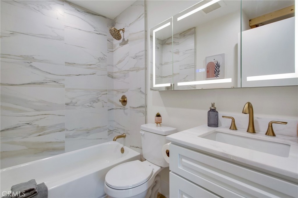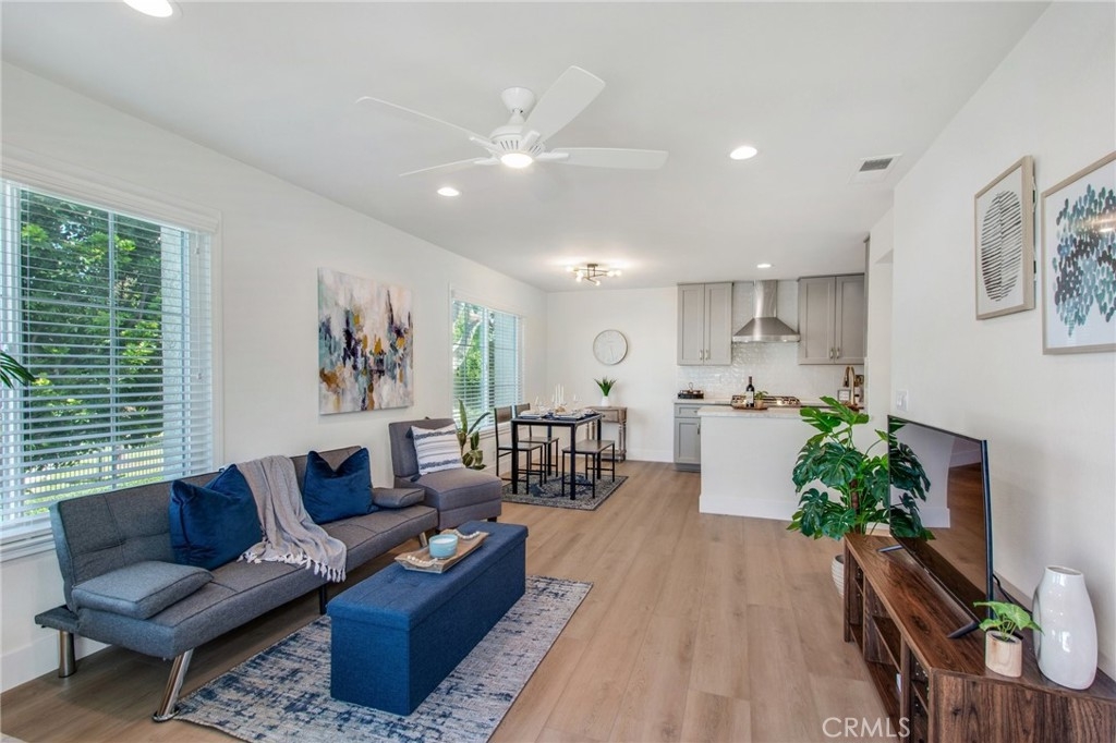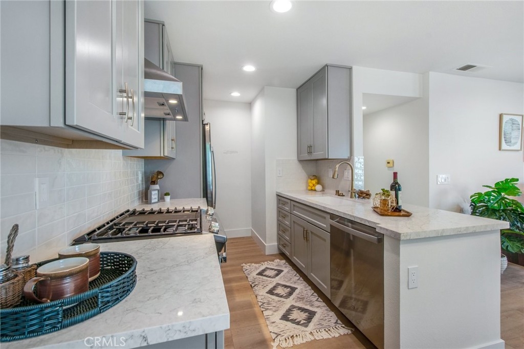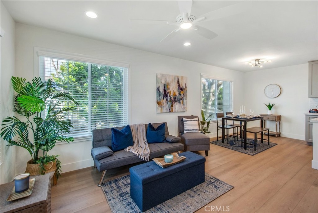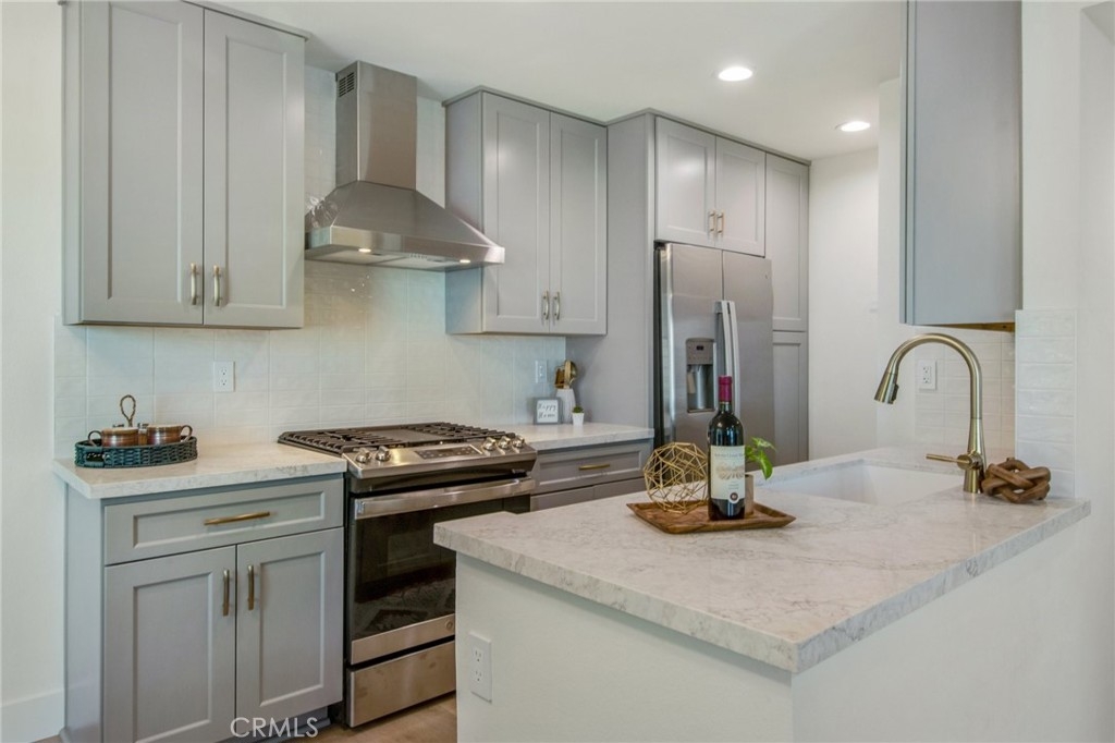 **WOW -55+ IN HUNTINGTON BEACH AREA -NEAR 5 POINTS/TRADER JOES! This hidden gem is in the quiet 55+ community of Windward Cove - A GATED Community of only 98 homes and Gate access to TERRY PARK, which is adjacent to the community! END UNIT with EXTRA Large DECK area on "2ND FLOOR" level as you enter into the 2br/1ba -NO ONE ABOVE! Home includes covered carport parking space. Security screen door front entry. This home has been BEAUTIFULLY and Completely UPGRADED THROUGHOUT!! FRESH coat of paint, NEW 5-inch Molding throughout home, NEW ELEGANT WARM BLONDE LUXURY VINYL PLANK flooring throughout main living spaces and NEW carpeting in bedrooms. LARGE Primary including LARGE walk-in closet and mirrored wardrobe closet and a second bedroom including mirrored wardrobe and situated well to use as either a guestroom or home office. RENOVATED Kitchen including Grey Shaker Style Kitchen Cabinets with Quartz countertops, NEW suite of GE kitchen stainless-steel appliances INCLUDES Refrigerator, Gas Range and Vent Hood, Dishwasher, Deep White Quartz Sink with Delta Champagne-Bronze Faucet, Custom Porcelain Tile Backsplash. NEW appliance Electrical "Circuits" added for Kitchen Appliances. NEW Front load Stackable Washer and Dryer. RENOVATED Bathroom with Newly Porcelain-Tiled tub Enclosure and NEW LED lighted/mirrored medicine cabinet with ample storage. NEW Custom Window Coverings over Vinyl Dual-paned windows. Recessed Lighting in Living room area, Kitchen and Bathroom. Ceiling Fans in each bedroom and Main living area. This Second Story SINGLE LEVEL Condo also includes Vaulted ceilings that give an OPEN and Spacious feeling. NEW Honeywell digital thermostat. LARGE storage-closet off sizable and inviting patio giving that beach cottage look that instantly feels like home. The HOA fee includes water and sewer with a new fresh coat of paint for the whole community scheduled for early next year! Close to Five Points Shopping Center. MINUTES from DOWNTOWN HUNTINGTON BEACH AND MAIN ST! CLOSE TO THE PIER AND PACIFIC CITY! **