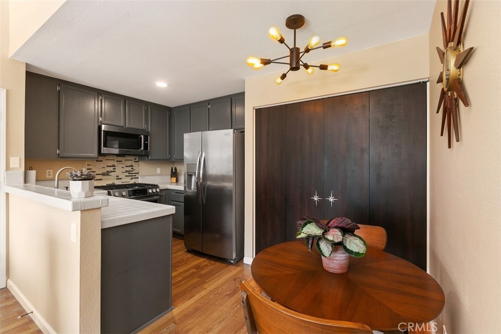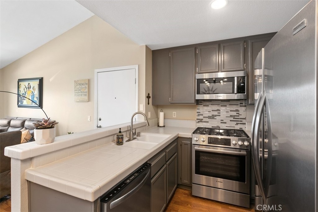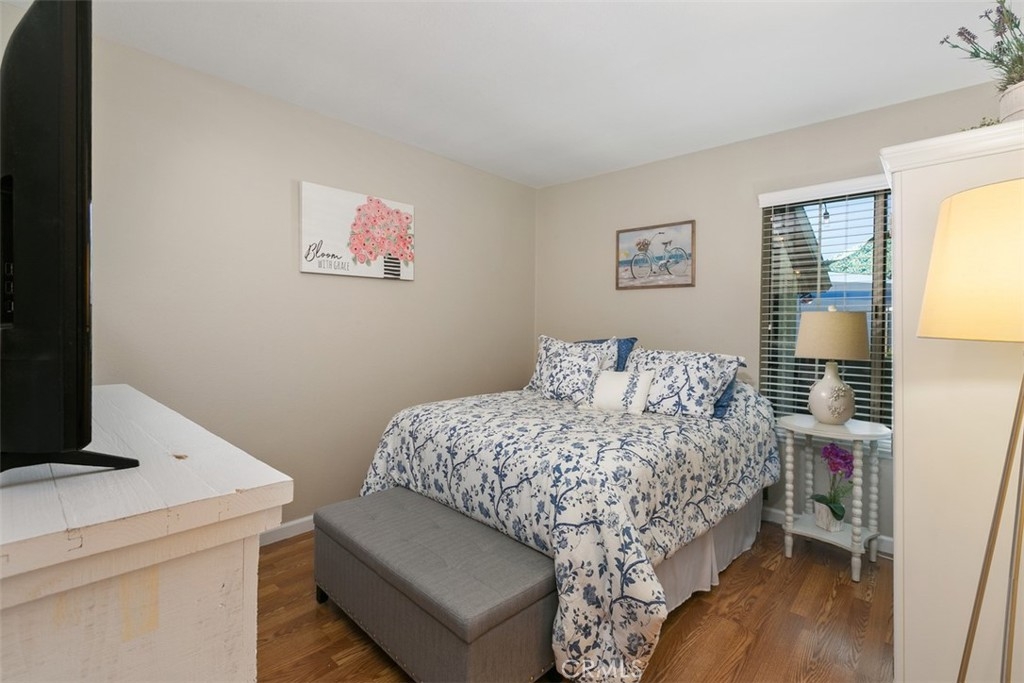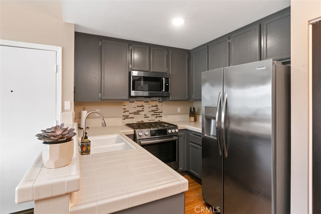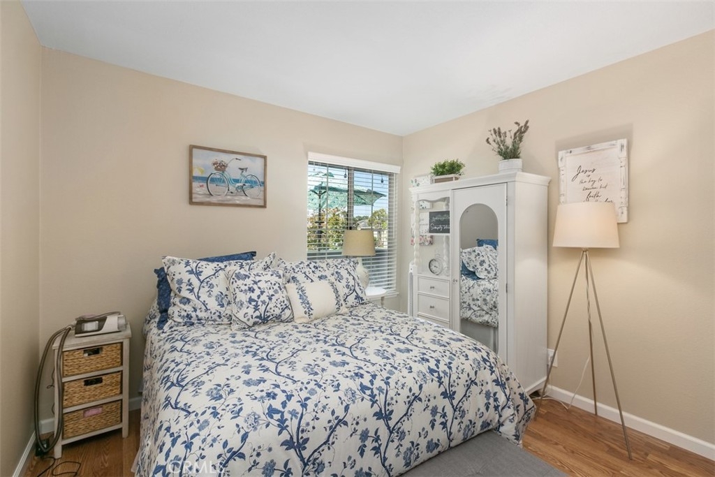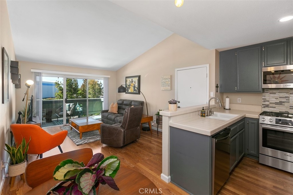 Wonderful condo in the Windward Cove 55+ gated community located just 3 miles from THE BEACH! This fantastic one bedroom, one bath upstairs condo has laminate flooring, a large storage pantry in the dining area and a HUGE walk in closet, plus extra storage on the patio. In the kitchen you'll find a chef's delight gas range, modern stainless steel refrigerator and time saving dishwasher. All appliances stay, including the washer and dryer. Enjoy the warm sun and fresh ocean breezes on your private balcony patio. Assigned covered parking space with additional space available for residents and guests. Convenient location, next to a large park full of mature trees, fragrant grass, and a playground for visiting grand children. Just minutes to the freeway, to the beach, and to plentiful restaurants and shopping! HOA fee includes water and trash. Don't wait - call today to see this beauty before it's gone!