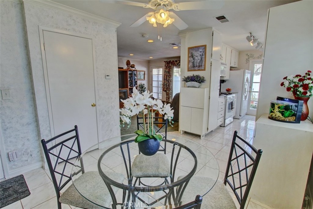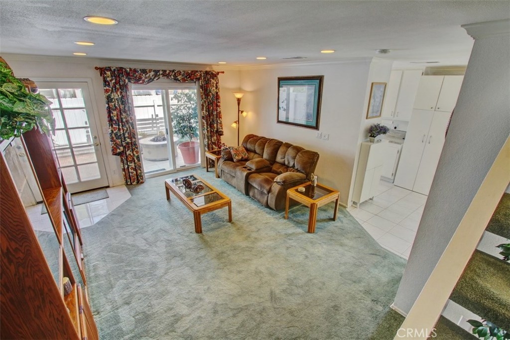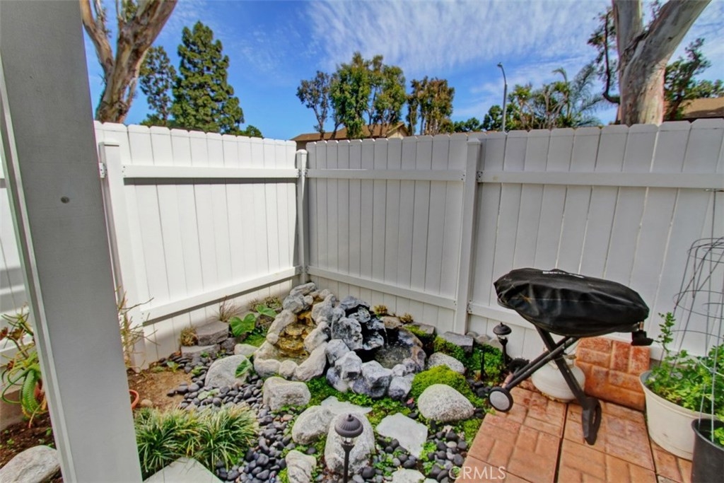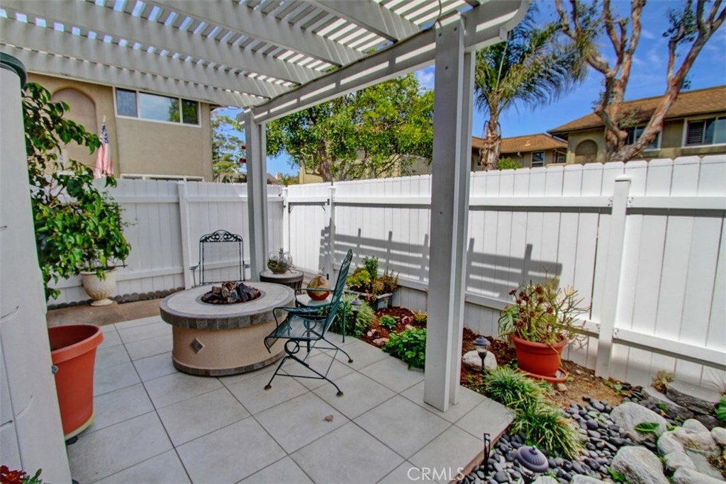 Truly a beautiful home, a stand alone detached condo with no shared walls. Surrounded by plush greenbelt areas this well maintained home features newer Milgard dual-paned windows, Custom Shutters, remodeled kitchen featuring beautiful cabinetry, granite counter tops, newer sink with a Kohler pull-out faucet, new garbage disposal, roll-out shelves, tons of cabinet space And extra pantry storage with soft close drawers . Dining room features scraped ceiling, crown molding and ceiling fan. The Living room features recessed lighting, beautiful beveled glass french doors allowing wonderful sunlight to enter with convenient access to the beautiful patio., Downstairs bathroom has recently been painted, the upstairs bathroom has been completely remodeled with a beautiful walnut vanity and granite counter tops, glass enclosed shower/bathtub. The spacious master features custom Plantation shutters, ceiling fan and mirrored wardrobe closet. Bedrooms 2 and 3 also feature Custom plantation shutters and mirrored wardrobe doors. Let's not forget the fantastic very large patio, which includes a custom moveable gas fire pit, Alumawood patio cover, fountain and misters for those warm sunny days. Absolutely perfect for indoor/outdoor living and entertaining. There is a one car garage with remote control access plus a private carport directly outside rear door, two dedicated off-street parking spaces plus one shared space. Bike to beach, award winning schools and much more!