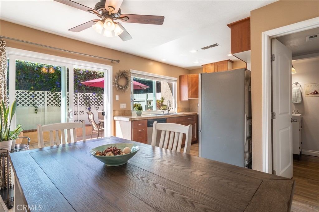 This updated townhome located in the Yorktown Villas in Huntington Beach is move-in ready! Featuring 2 bedrooms and 1.5 bathrooms, this two-story home is ideally located on a corner with only one common wall, and steps to the community pool and park. As you enter the home you are greeted to an open floor plan with the living room off the front door flowing into the formal dining area just off the kitchen. The upgraded chef’s kitchen features shaker style cabinetry, granite countertops, and stainless steel appliances. The sliding doors off the kitchen grant you access to your private patio, the ideal space to enjoy a meal and take in the ocean breeze. Upstairs, you’ll find two guest bedrooms that share a completely remodeled bathroom down the hall. Additional upgrades in the home include beautiful vinyl plank flooring, scraped ceilings, and dual plane windows. Sitting only 3 miles to the beach, and close to shopping and restaurants, this home is a must-see!