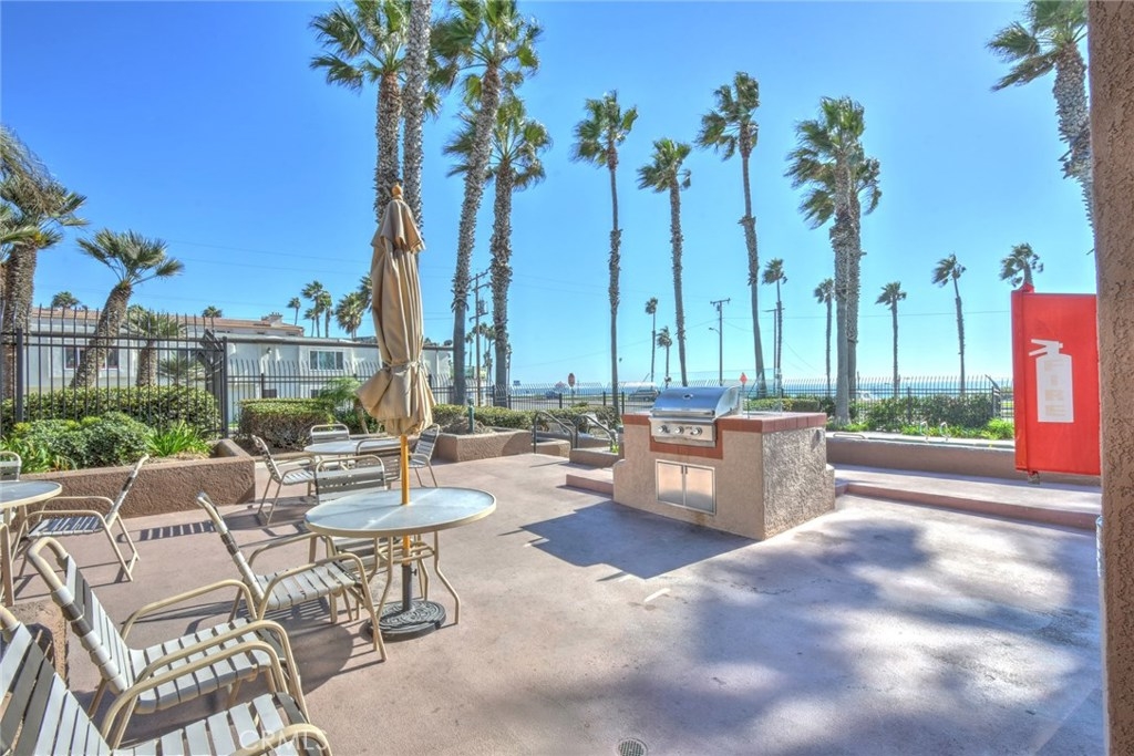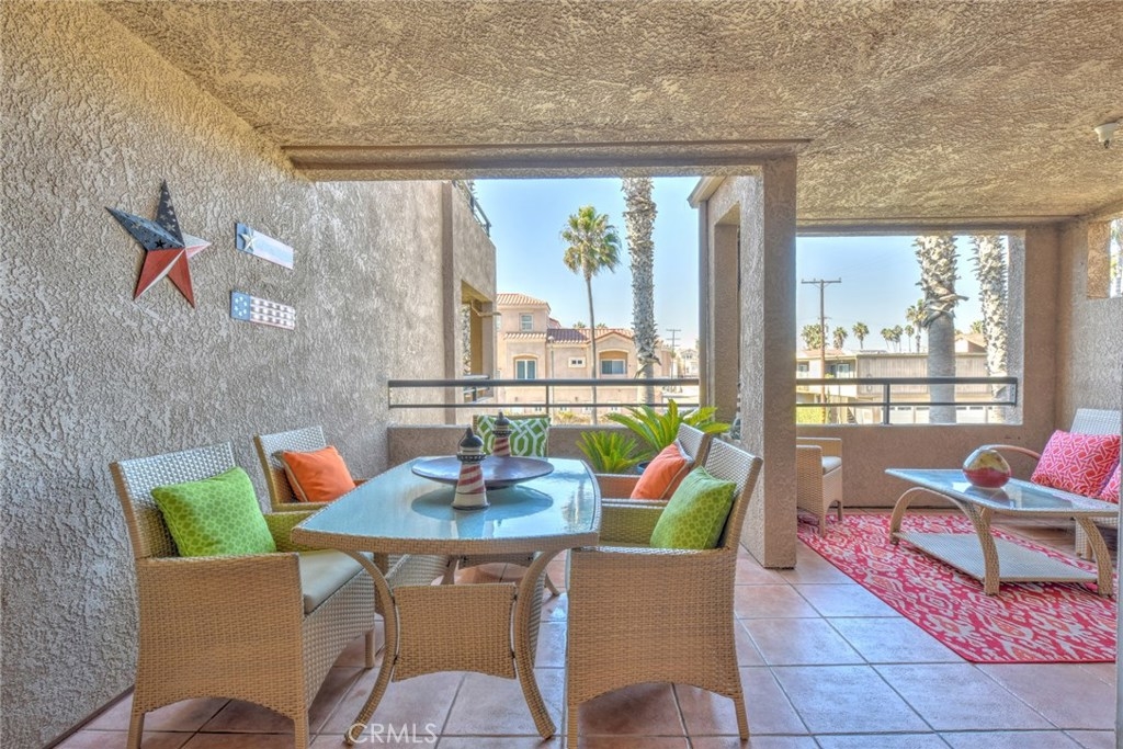 Over 1,000 square feet of living space when including the super large covered patio! Awesome oceanfront location Huntington Beach condo complex. This is a gated 2nd story condo on Pacific Coast with ocean views from the deck, north facing for sunset views. Super large deck for entertaining. Elevator on-site. Private Underground parking with assigned space. 1 bedroom, 1 bath, kitchen, dining room, living room. Gate Guarded complex. New stainless appliances. Open Kitchen, Kitchen bar seating, Master bedroom, large closet with custom built ins. Gym, Pool, Spa and Laundry amenities. Personal storage area, bike storage area and gated assigned subterranean parking. Grilling and BBQ area with patio tables on site. HOA includes water and cable TV. The condo has a SUPER large balcony that includes an outdoor dining area and an outdoor living room area with beautiful sunset views. Seven blocks from the famous Huntington Beach pier and boardwalk -- and the US Open Grandstand. The complex has a beautiful pool, hot tub, a built-in gas barbecue, a community room and a workout room. Close to Dog Beach. Amazing walk score and local restaurants.