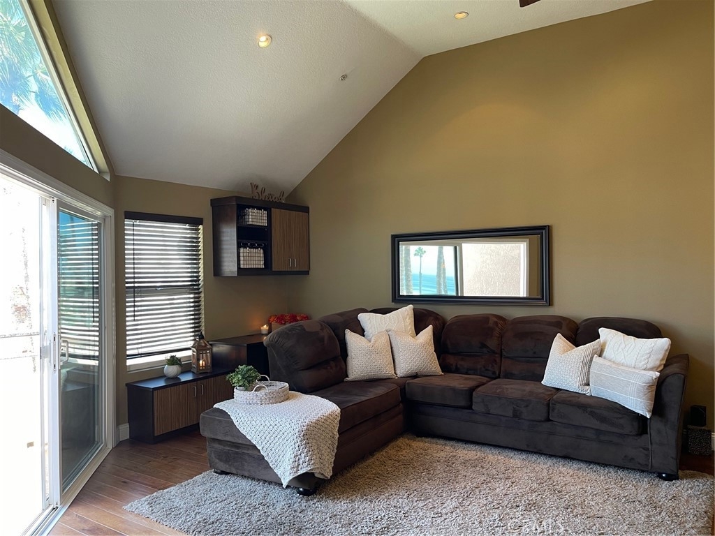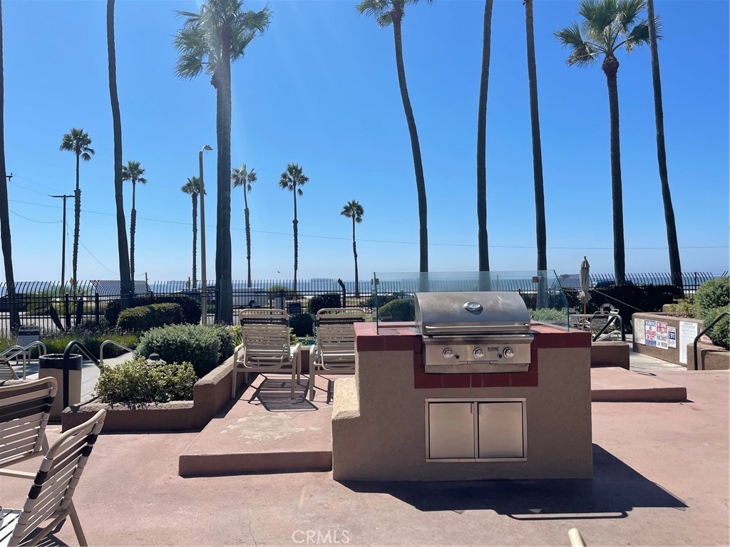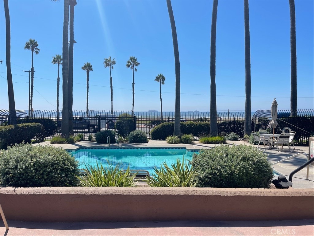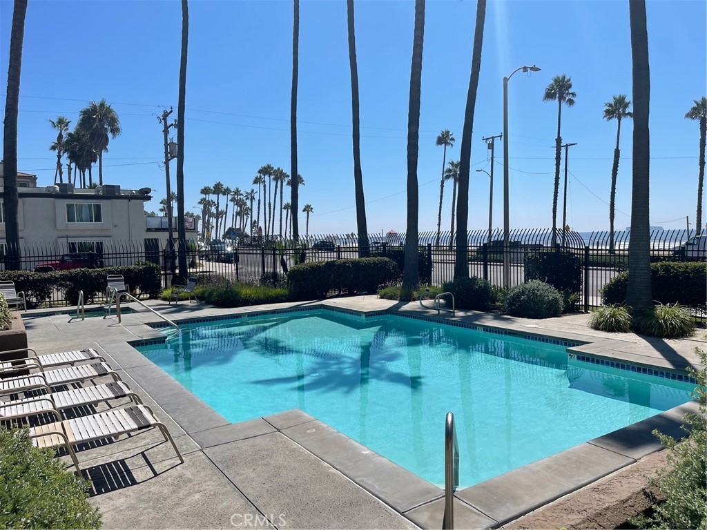 Pierhouse Condos provide resort style living on Pacific Coast Hwy. This move-in ready condo features a penthouse 1 Bedroom/1 Bathroom with cathedral ceilings, recessed lighting and ceiling fan. A patio view of the ocean perfect for dining outside. A spacious living area that can convert easily into additional overnight space for those visiting guests that love beach vacations. Enjoy dining on the patio with a view of the ocean waves. The community pool area offers a front row view of coast highway and ocean as well as the famous Air Shows and pier fireworks! A BBQ, spa and picnic area with a clubhouse are steps away from the pool.The kitchen features SS appliances, Silestone counters, custom cabinet & pendant lighting. A breakfast bar has seating for 4 and an open floor plan that accommodates additional dining. A gated entry up top and gated ground floor with 2 reserved parking spaces #67,68 & Bike storage. The kitchen features SS appliances, Silestone counters, custom cabinet & pendant lighting. Bathroom vanity with Silestone, custom cabinet, mirrors, lighting & tiled shower. Sound proof hardwood flooring. A gated entry up top and gated ground floor with 2 reserved parking spaces #67,68 & Bike storage. Community laundry facility on each floor. Desirable rental year round.
