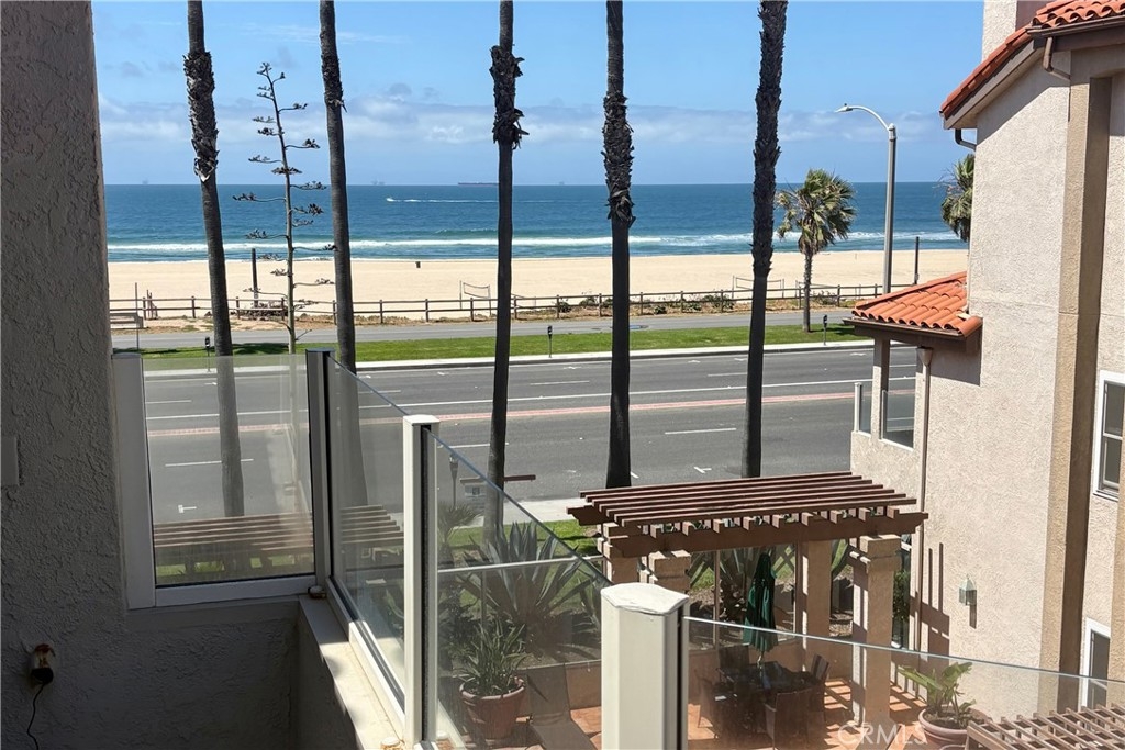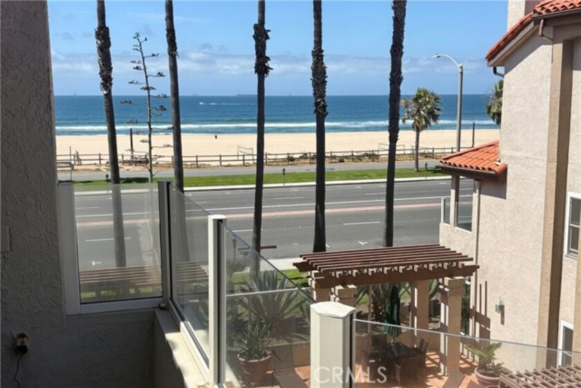 Oceanfront condo just steps from the sand and a short stroll to Main Street and Pacific City. Take in sweeping views of Catalina Island and unforgettable sunsets from your private retreat. Step out onto your expansive deck and check the surf in real time—your own front-row seat to the coastline. This turnkey, single-level top-floor residence offers elevator access, soaring vaulted ceilings, and a bright, breezy ambiance that captures the essence of coastal living. Thoughtfully designed for comfort and ease, the home features added recessed can lighting, enhancing the warm and inviting retreat-like atmosphere throughout. As you enter, you’re welcomed by a beautifully remodeled kitchen designed with both style and function in mind—featuring quartz countertops, stainless steel appliances, custom cabinetry, and elegant pendant lighting. The open-concept layout flows effortlessly into the casual dining area and spacious living room, creating an ideal setting for entertaining or simply relaxing while enjoying ocean views. The oversized deck, enhanced with glass panels, offers the perfect space for alfresco dining or unwinding with a morning coffee or evening glass of wine, all while taking in the ocean breeze and vibrant sunsets. This thoughtfully designed two-bedroom layout includes a guest bath with direct access to the secondary bedroom, along with a generously sized primary suite featuring dual closets. The primary bathroom has been fully transformed into a spa-like retreat, complete with a walk-in shower, refined finishes, and a serene coastal aesthetic. Residents of the Ocean Breeze community enjoy resort-style amenities including an ocean-facing pool and spa, on-site gym, secure bicycle storage, and two assigned parking spaces. Located in the heart of Surf City USA, Huntington Beach offers an unmatched coastal lifestyle with world-class surfing, scenic beach paths, vibrant downtown shops and dining, and year-round events like the U.S. Open of Surfing and the Pacific Airshow. A rare opportunity to own a premier oceanfront property—perfect as a full-time residence or a weekend escape where every day feels like a vacation. Welcome home.
