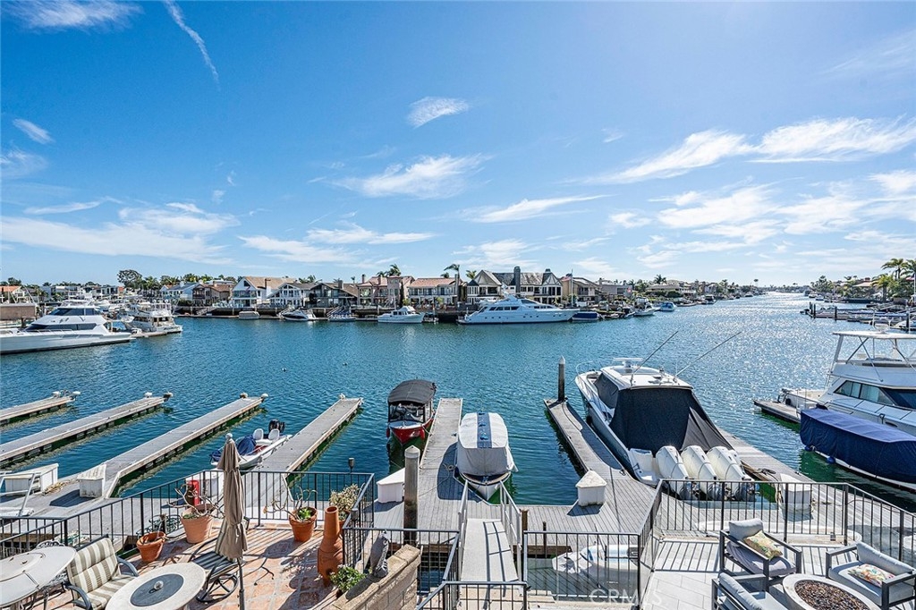 Spectacular Main Channel and Catalina views from every level of this rare front-row Seagate residence. Arguably one of the best locations in Huntington Harbour, this exceptional property accommodates one of only six 42-foot docks available in Seagate. Highly sought-after Davenport plan offers three bedrooms and three baths, including a main-level bedroom and bath, while the primary suite and secondary bedroom are located upstairs. Upper level also includes the laundry area, and the secondary bedroom features a spacious walk-in closet with an office area. Low-maintenance wood-inspired porcelain tile spans the first floor, while accordion slider doors frame the view of the oversized waterfront deck. Spacious kitchen enjoys blue water views and is equipped with quartz countertops, a Viking stove with gas cooktop, and a built-in refrigerator. Newer recessed lighting has been added throughout most rooms. Primary suite upstairs features a large balcony with expansive harbor views, dual vanity sinks, quartz countertops, and a beautifully remodeled shower. Additional features include air conditioning and attic space providing ample storage with potential to convert to a third-floor bonus room. Seagate community offers resort-style amenities including six tennis courts, two pools, a spa, and two clubhouses. Eight homes on Bonaire were the original Seagate models and offer larger boat docks, oversized back decks, and endless Harbour views. On clear days Catalina Island is visible while enjoying the waterfront lifestyle. Ideally located near world-class shopping and dining, just minutes from Harbour View Elementary and the beaches of Surf City.