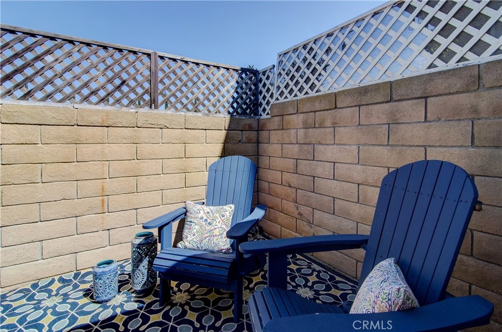 Nestled in the back of the beautifully maintained Harbor Heights Villas, your own private oasis awaits. This dream cottage fronts a semi-private greenbelt, with only 1 common wall, and no one above or below. It truly feels more like a semi detached single-family home than a condo. Facing west allows you to enjoy the breathtaking sunset skyline directly from your living room. Turn-key unit freshly painted: 2-tone colors really allow the crown molding, baseboards, shutters and wainscoting to pop. Rich laminate wood flooring expands throughout, which makes the interior feel open and spacious. Kitchen features updated white shaker cabinets, stainless steel appliances, high-end JennAir range, recessed lighting and breakfast counter. There's no guessing over which bedroom is better: both are large, have ceiling fans, have shutters on the windows, and both have spacious closets. Fantastic designer touches in the bathroom: vanity sits in front of the wainscoting, tiled shower/tub, rain-showerhead, and lighting fixture above the mirror. Yes, there's also a private enclosed patio and AC! In addition to the pool and greenbelt there's so much more to love about this community, beginning with parking. Enclosed shared-garage which comes with a lockable storage cabinet AND closet. You'll also receive 2 parking placards, and the association offers RV parking for a nominal fee. Perfectly located near the beach, some of OC’s best dining and shops, as well as easy access to to the freeway.