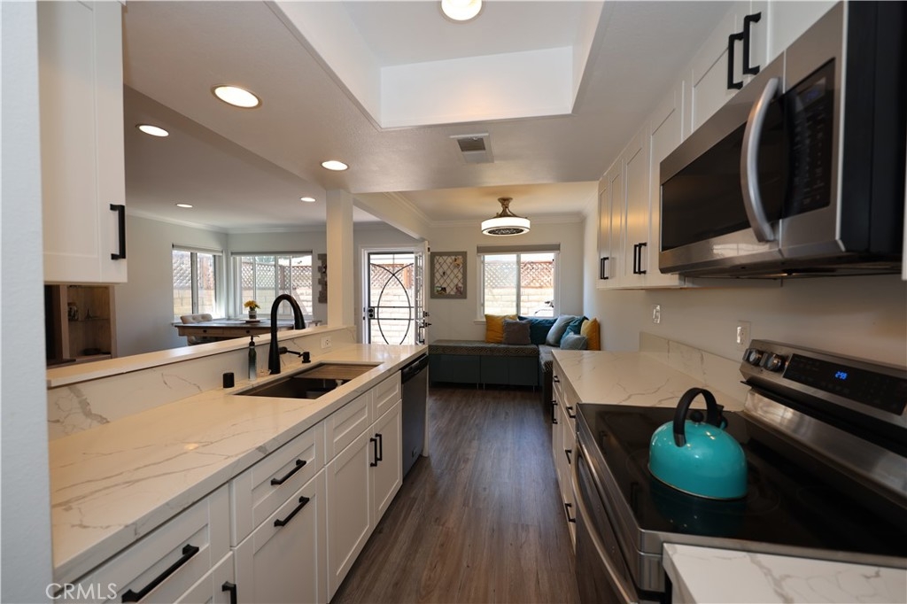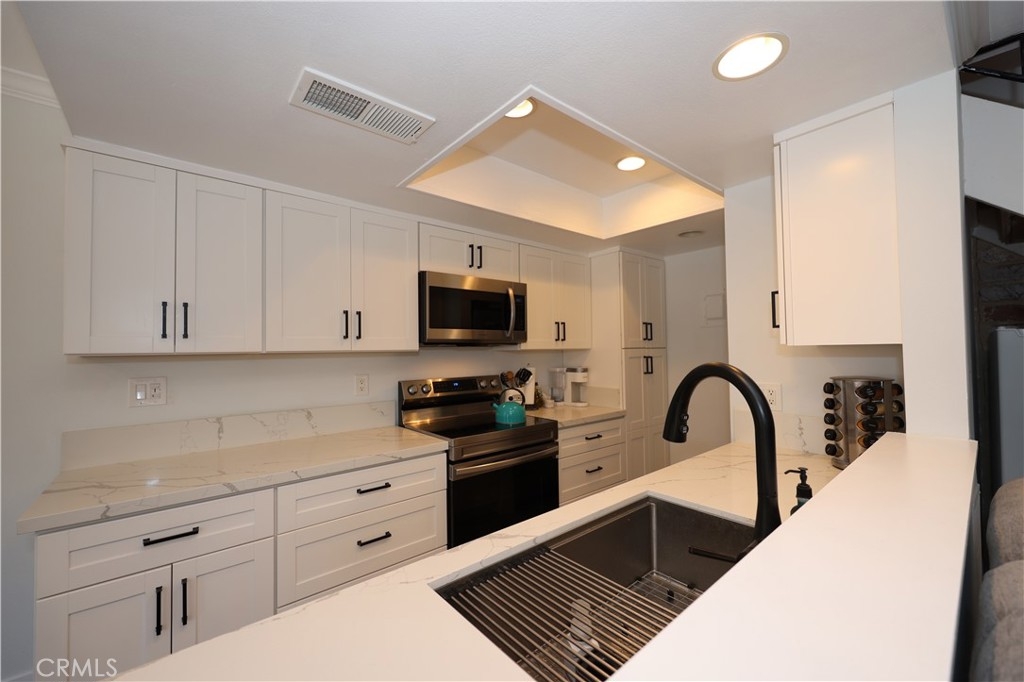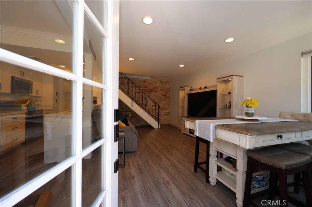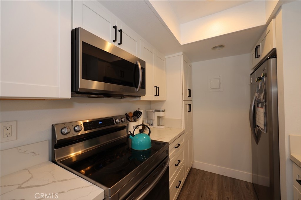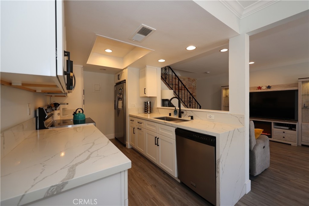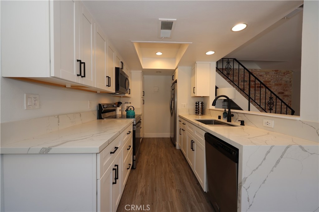 **Low monthly HOA dues ** Not on leased land ** Your chance to live in Surf City USA. Harbor Heights Villas condos is located in close proximity to the Huntington Harbour, Humboldt Park, Sunset Beach, Dog Beach and Bolsa Chica State Beach. Lovingly upgraded 2 story unit with no one above or below you. Bright and open living space with newer floors, scraped ceilings, dual pane windows, ceiling fans and custom window coverings. Remodeled gourmet kitchen features quartz counters with waterfall, stainless steel appliances, white cabinetry with soft close doors and recessed lighting. Relax in an upgraded bathroom with a soaking tub, standing vanity and a bluetooth enabled speaker. Both bedrooms have spacious closets with custom shelves to keep you organized. Convenient laundry located inside the unit on the bedroom level. Entertain or relax in your private patio wired with cafe lights in one of the unique extra wide patios in the community. Lots of storage in the garage for your toys. Community offers ample guest parking, lush landscaping, great amenities including pool, basketball court, greenbelts, walking paths, along with a clubhouse and an RV parking space that can be rented based on availability. Walking distance to shopping and restaurants.