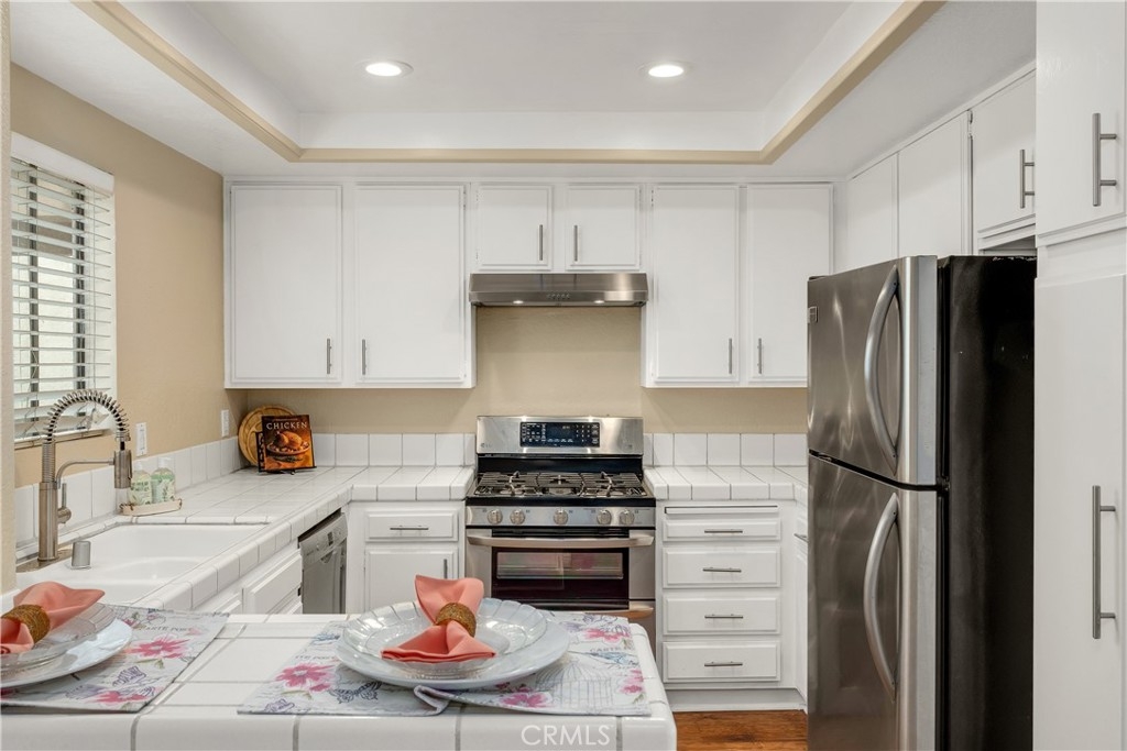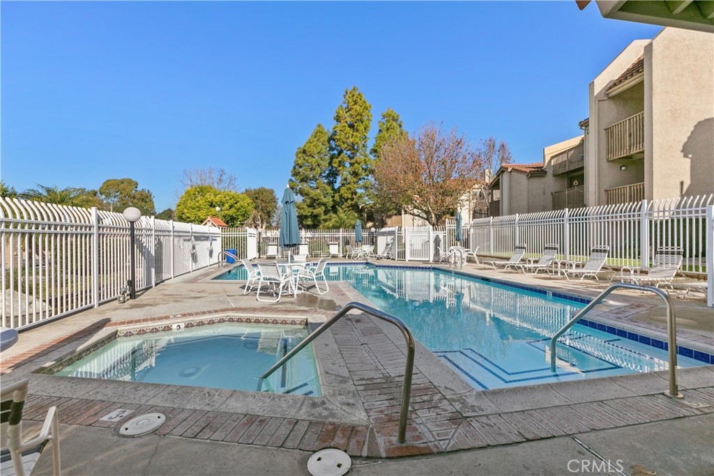 Nestled within a private gated community, this beautifully updated second-floor unit offers 2 spacious bedrooms and 2 full bathrooms. Step inside to discover a bright and airy living space where natural light pours into the living room, complete with a cozy gas fireplace and a separate dining area—perfect for entertaining. Sliding glass doors open to a private balcony. The kitchen is thoughtfully designed with crisp white cabinetry, tile countertops, recessed lighting, vinyl flooring, and a convenient breakfast bar. The first primary suite features dual vanity sinks, a luxurious soaking tub, a walk-in closet, and direct access to the balcony through a second patio door. The second primary bedroom is generously sized and includes its own en-suite bathroom for added privacy. Additional highlights include vinyl wood flooring throughout, an in-unit laundry room with extra storage, a one-car garage, and an additional parking space. Community has tranquil streams and walking paths, two pools, two spas, a clubhouse, and a BBQ area. All this in a prime location—just minutes from Bolsa Chica State Beach, shopping, and dining.