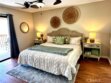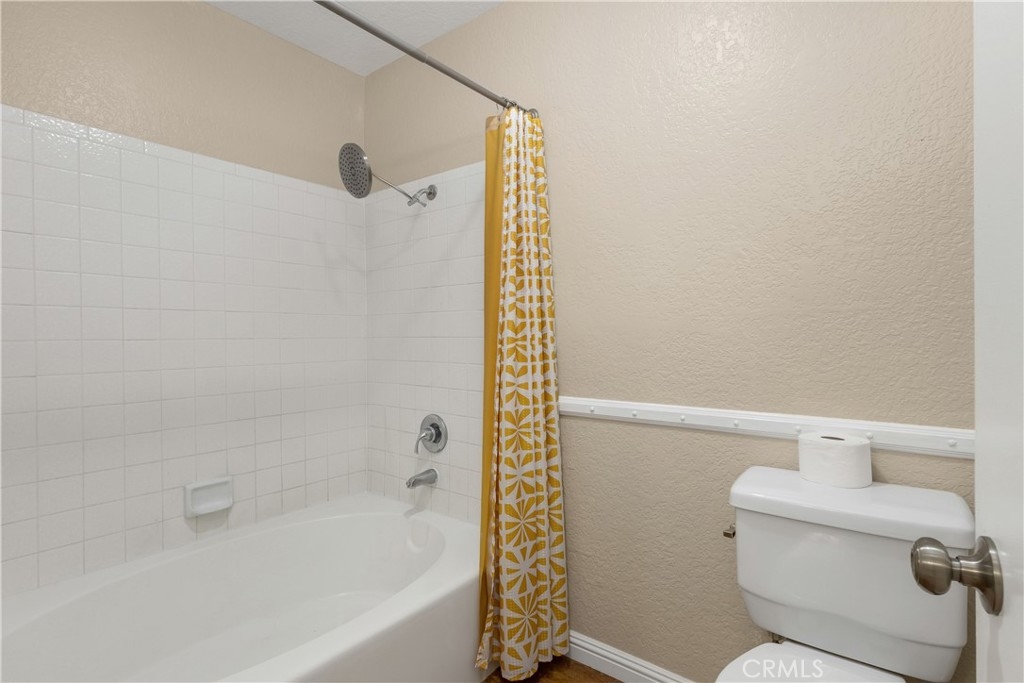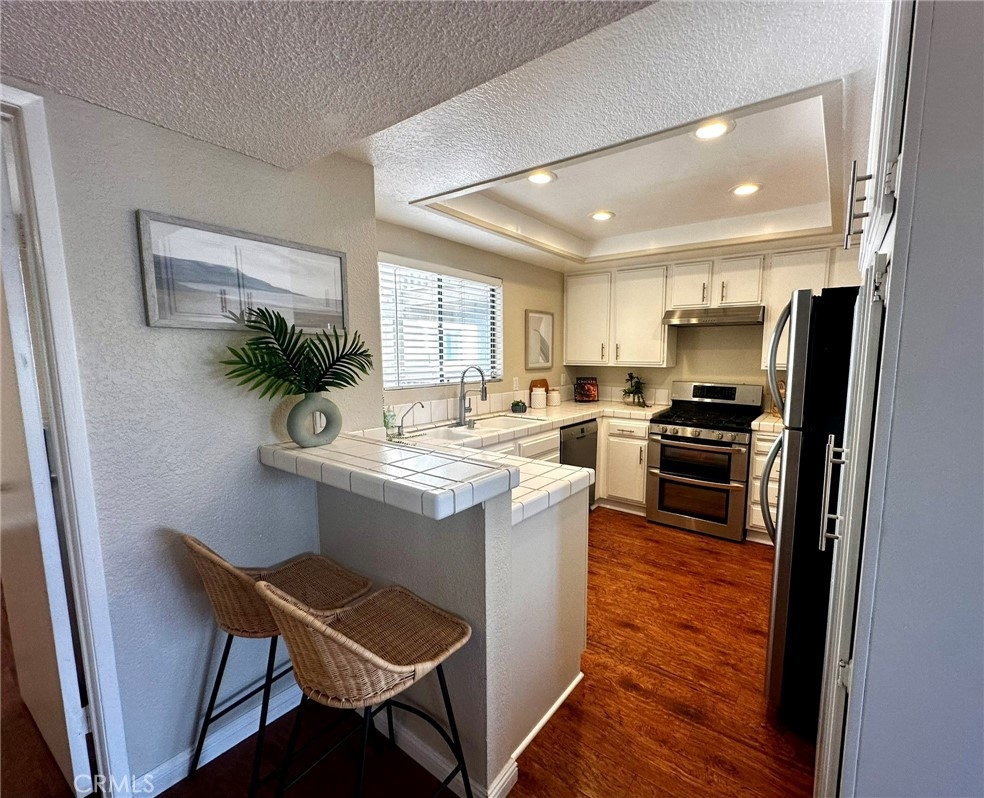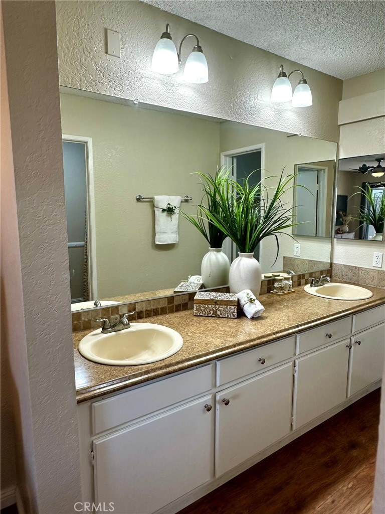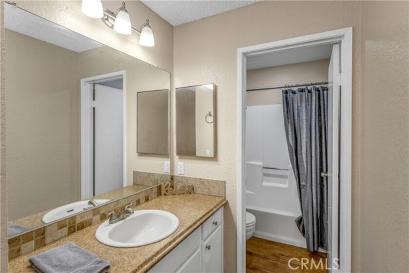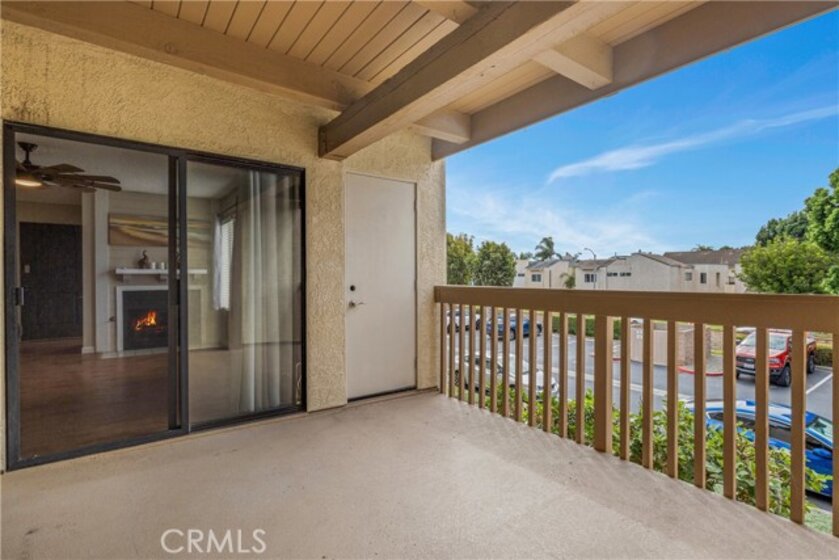Tucked inside a private gated community, this beautifully updated second-floor residence offers two spacious bedrooms and two full bathrooms. Step into a bright and inviting living space filled with natural light, featuring a gas fireplace and a separate dining area. Sliding glass doors lead to a private balcony, creating a seamless indoor-outdoor feel. The kitchen showcases white cabinetry, tile countertops, recessed lighting, durable vinyl flooring, and a convenient breakfast bar for casual dining. The first primary suite is a relaxing retreat with dual vanity sinks, a soaking tub, a walk-in closet, and direct balcony access through its own sliding patio door. The second generously sized primary bedroom also features its own en-suite bathroom, providing comfort and privacy for guests or family members. Additional highlights include vinyl wood flooring throughout, an in-unit laundry room with extra storage, a one-car garage, and an additional assigned parking space. Residents enjoy resort-style amenities including tranquil streams and walking paths, two pools, two spas, a clubhouse, and a BBQ area. Ideally located just minutes from Bolsa Chica State Beach, shopping, and dining, this home offers the perfect blend of comfort, convenience, and coastal living.