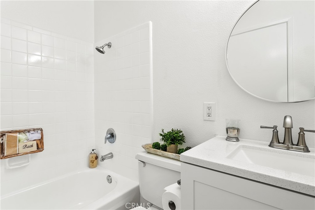 Welcome to this lovely Huntington Beach home at 16684 Arbor Circle, located in a prime peaceful interior location within the Huntington Gardens Community. This coastal home features 2 bedrooms, 1 bath, of 835 sq. ft of living, with a 1 assigned parking space in a shared 2 car garage with a neighbor, 2 extra storage areas in the garage (# 84), and access to an attached laundry room shared with only 3 neighbors. This community offers a low HOA of $335.00 with lush green belts with mature trees, ample convenient parking, swimming pool with BBQ's, basketball court, large dog park, sidewalks to bike to the beach. The HOA also covers, trash, common laundry water, exterior landscape in the common areas & exterior termite. This wonderful home has an open, light & bright concept, recently painted, new luxury vinyl plank flooring in the living room, kitchen and dining area. New window blinds throughout, new carpet on the stairs leading up to the second level with 2 bedrooms & 1 full bathroom. Both bedrooms are nice size, new carpet and recently painted and the primary bedroom has a walking in closet. There is a linen closet conveniently located in the upstairs hallway, also a newer furnace inside another closet in upstairs hallway. The upstairs full bathroom was recently updated with new luxury vinyl plank flooring, shower/bathtub combo, new sink vanity, new faucets and new mirror. The kitchen is open with a high breakfast bar with lots of cabinets, pantry, utility closet, new luxury vinyl plank flooring, stove and hood vent. Your home is situated by neighborhood shopping, dining, easy freeway access and just approx. 5 miles from the world most famous Huntington Beach, Huntington Pier, close to Pacific City, downtown Huntington with a wealth of shopping and dining options in this spectacular surf city. The Best by the Beach is a Must See!!! FHA Approved Complex!!!
