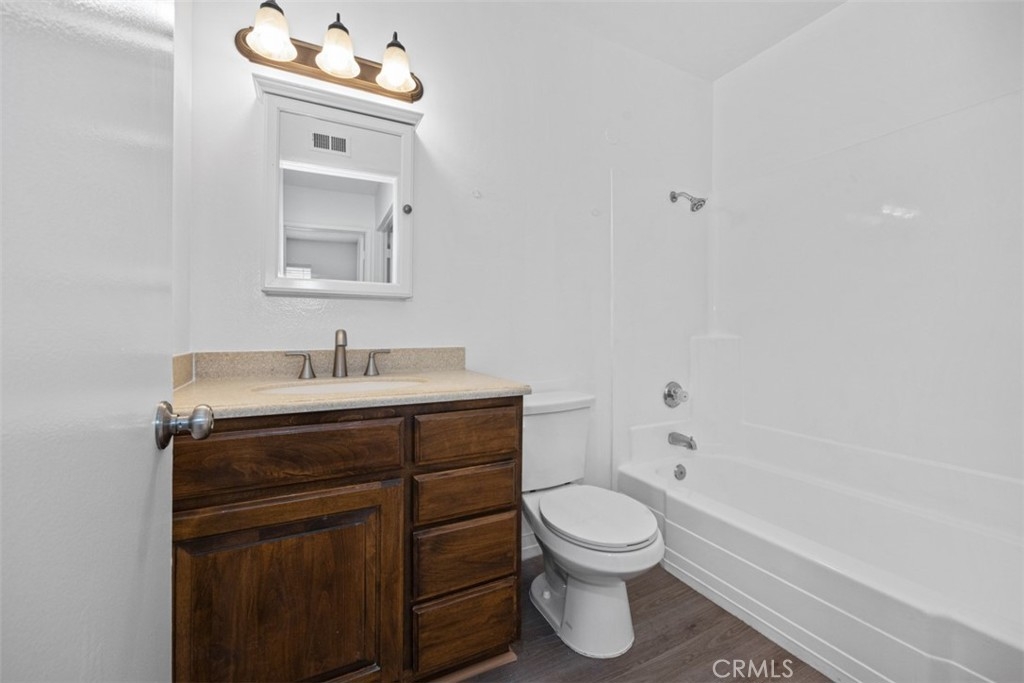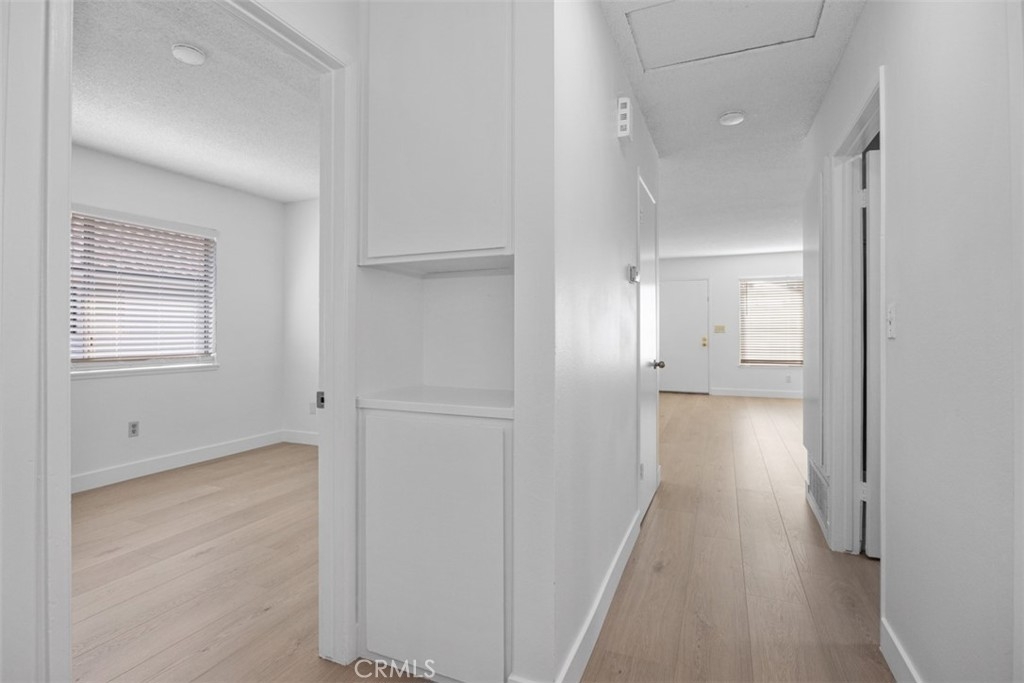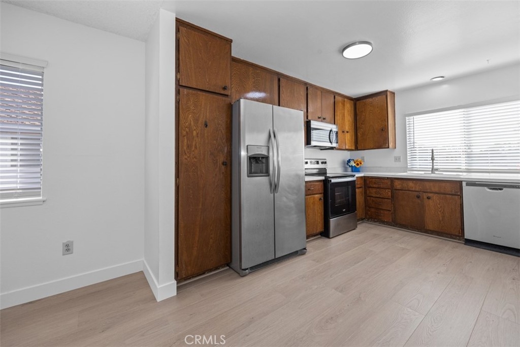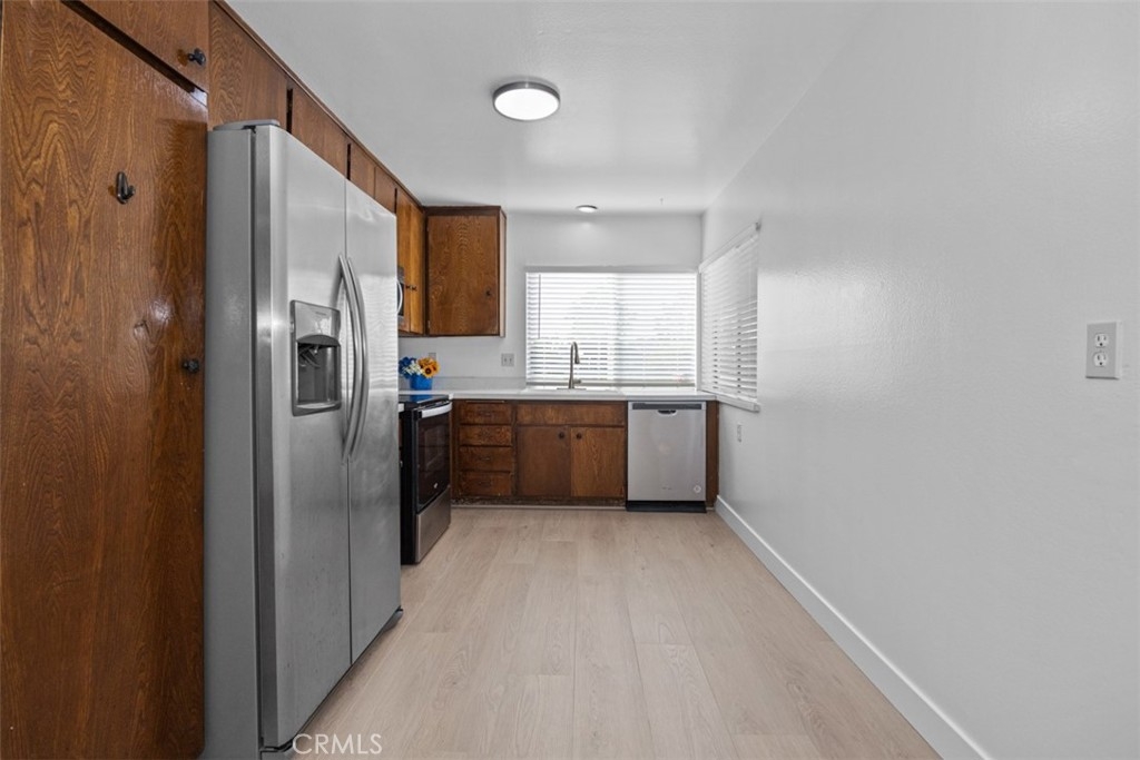 Step into this lovely upstairs 2-bedroom condominium. The living room, dining room, and kitchen area is very spacious. This great condominium has new beautiful laminate flooring and paint throughout. The kitchen has new stainless steel electric range, dishwasher, and newer refrigerator. The inside laundry room is spacious with extra storage. The master bedroom has a walk-in closet with shelving. Unit has 2 carports each with large storage cabinets. This complex is very well maintained with a great pool area. This home is located on a cul-de sac and only a few miles to the beach, schools, shopping and parks. Enjoy the resort lifestyle throughout the year!