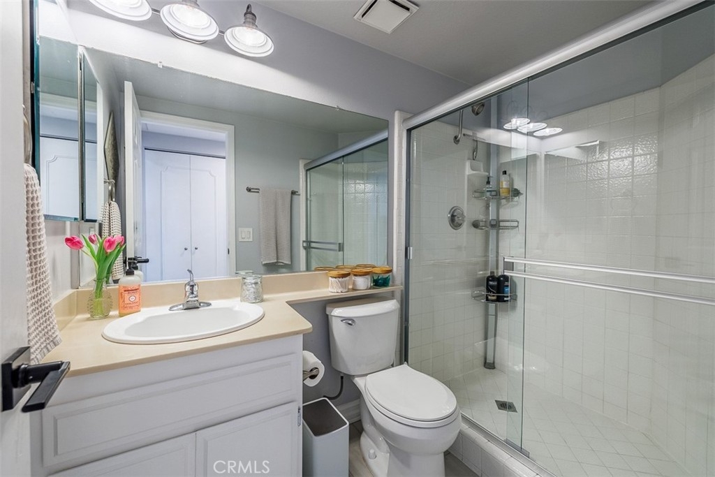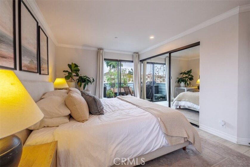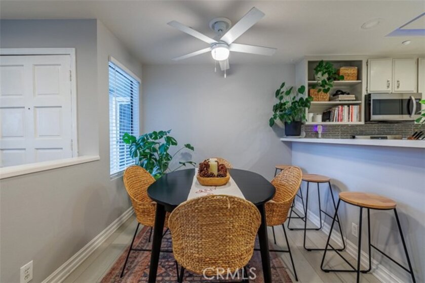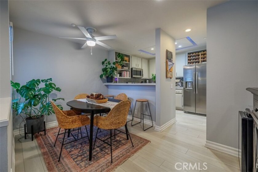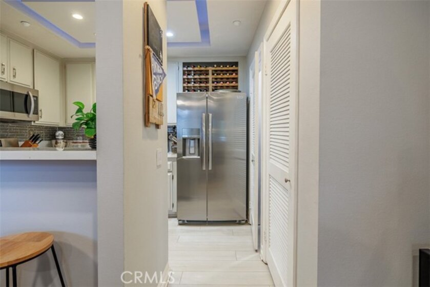 A prime coastal opportunity located within the gated community of Pelican Cove. This upper-level, cape cod style condo offers single-level living with no one above. The spacious living room features vaulted ceilings that open up the space, a gas fireplace, and access to a private balcony that brings in abundant natural light. The beautifully upgraded kitchen showcases quartz countertops, stainless steel appliances, a breakfast bar, an inviting dining area, and a walk-in pantry. The primary suite includes expansive mirrored closet doors and direct balcony access, creating an easy indoor-outdoor living space and added light. The hall bathroom features a walk-in shower. Newer luxury vinyl plank flooring runs throughout the home, complemented by recessed lighting and smart home features, along with ample storage space throughout. A stackable washer and dryer are conveniently located inside the laundry closet and are included. Additional features include two assigned gated subterranean parking spaces, a private storage closet, and access to a separate bike storage room, along with community pool, spa, and clubhouse. Conveniently located near shopping and dining, and just minutes from Huntington Harbor and Bolsa Chica State Beach, offering easy access to everyday amenities and coastal living.