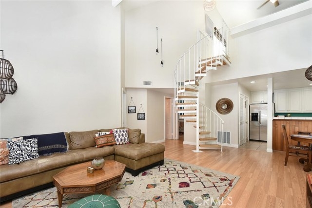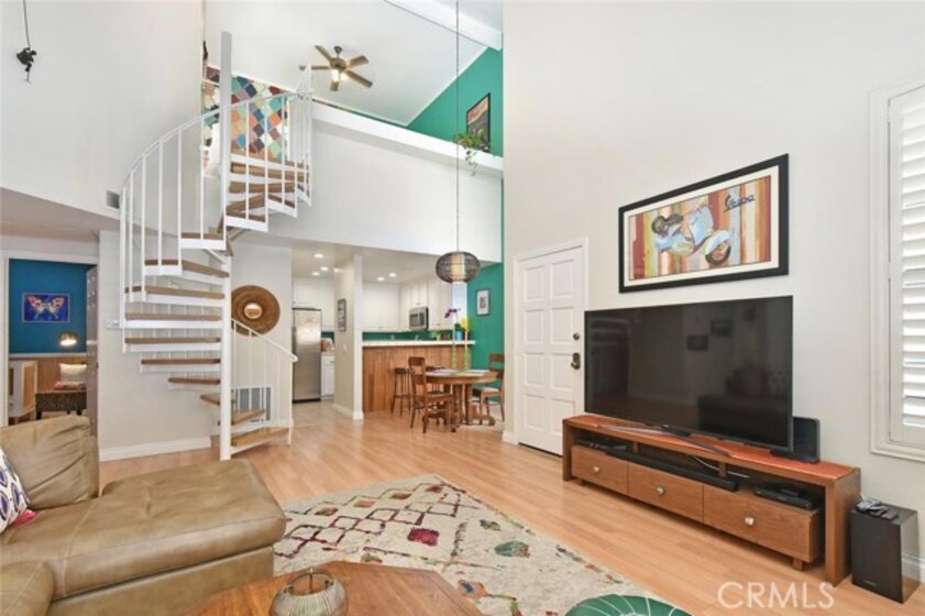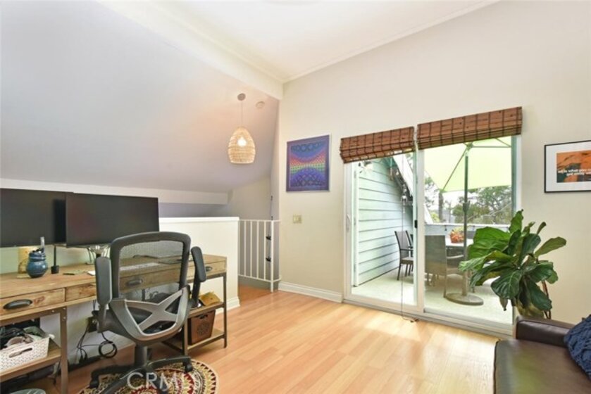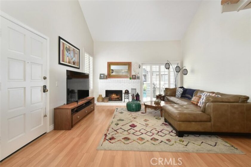 Charming condo near Huntington Harbour & Bolsa Chica State Beach! This 3 bedroom, w/ the third bedroom currently being used as an upstairs loft, is bright and open w/ vaulted ceilings, 2 balconies, ocean breezes & a list of upgrades. This upper end corner unit has been tastefully done w/ custom paint, laminate wood floors, plantation shutters, ceiling fan, & stainless steel appliances. The family room has an open balcony, vaulted ceiling, beautiful paint palette, fireplace and a flood of natural light. The dining room sits next to an eat up counter which is also a pass through for the kitchen with stainless steel appliances, plenty of tiled counter space and an abundance of storage including a pantry. The Master bedroom has laminate wood floors, mirrored closet doors, closet organizers & access to the private balcony. The guest room is oversized with 9' ceilings, closet organizers, laminate wood floors, custom paint and chair rail. Upstairs the spacious loft can be an office, separate living area or a bedroom with pitched ceilings and plenty of space. Completing this home is the in unit laundry w/ washer and dryer included, 2 parking spaces in a secured area, oversized attic room, additional storage w/ the parking and a key to a secure bike room. This private gated community offers walking to the beach, to shopping and dining, to Harbor View Park which has soccer fields, basketball and hand ball courts and a fantastic tot lot. Don't miss out!