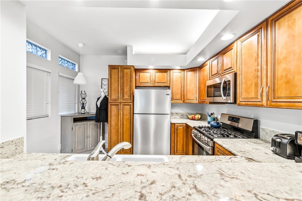 Welcome to this single-level corner condo nestled in the highly sought-after gated community of Cabo Del Mar in Huntington Beach, CA. This residence boasts 2 bedrooms and 2 bathrooms across a spacious 1,178 square feet of living space. Step inside to discover an inviting ambiance enhanced by elegant engineered hardwood flooring that graces the living room and bedrooms. Gourmet kitchen is adorned with granite counters, ample cabinets, and stainless steel appliances, including a built-in microwave. Perfect for culinary enthusiasts and entertaining guests, this kitchen is both functional and stylish. Focal point of the home is the generously sized living room, featuring a cozy fireplace and a sliding door that leads to a large balcony. This outdoor oasis not only provides a serene space for relaxation but also offers two sizable enclosed storage spaces, adding practicality to the charm. Primary bedroom is a retreat in itself, boasting a sliding door to the balcony, a master bath with an inviting oval bathtub, and a vanity with dual sinks. Both bedrooms feature mirrored closet doors and organizers, optimizing storage and adding a touch of modern flair. Convenience is key, with two assigned subterranean parking spaces conveniently located right below the unit. The property is meticulously maintained and move-in ready, ensuring a seamless transition for its new owners. Beyond the confines of this beautiful home, residents are treated to a resort-like lifestyle with access to a range of amenities, including a large pool, spa, club house, tennis court, and racquetball court. Revel in the Southern California sunshine while enjoying the association amenities, including a sauna for relaxation. Ideally situated, this residence offers proximity to walking trails at Bolsa Chica Mesa and Wetlands, as well as renowned beaches, shopping destinations, and a variety of restaurants. Embrace the coastal lifestyle in this prestigious community with amenities like; Club House with a Pool & Spa, Racquetball Court, Tennis Court, and a Sauna! Don't miss the opportunity to call this exceptional property home and experience the best of Huntington Beach living.