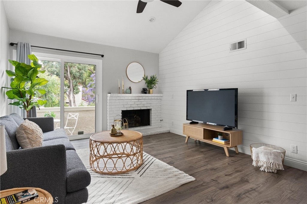 Welcome to this beautifully remodeled 2 bedroom, 2 bath condo with a loft in the highly sought-after gated community of Huntington Beach. Boasting a recent full renovation, this condo offers a modern and stylish living space perfect for those seeking both comfort and convenience. Step inside and be greeted by the open and bright floor plan, featuring vaulted ceilings and large windows with plantation shutters that flood the home with natural light. The spacious living room offers a cozy fireplace, ideal for relaxation and entertaining guests. Above the living room is a versatile loft area, perfect for a home office, playroom, or additional sleeping quarters. The fully remodeled kitchen is complete with sleek dolomite countertops, stainless steel appliances (refrigerator included), ample cabinet space, and a coffee bar. Enjoy preparing delicious meals while staying connected with your loved ones in the adjacent dining and living room area. The condo offers two generously sized bedrooms, including a luxurious primary suite with dual closets and a private ensuite bathroom with a triple-headed shower. Both bathrooms have been tastefully upgraded with modern fixtures, elegant tiling, and designer finishes. The condo also features convenient in-unit laundry facilities for added convenience, washer and dryer included. Situated within a gated community, this condo offers a resort-like lifestyle with an array of amenities. Take a dip in the sparkling pool on warm summer days, relax and unwind in the sauna, or challenge friends to a friendly game of tennis or indoor racquetball on the community courts. With ample guest parking available, you'll never have to worry about accommodating visitors, and with two reserved covered parking spots, you'll always have a secure place for your vehicles. Located in Huntington Beach, this condo is a bike ride away from its famous beaches, and the complex backs up to the Bolsa Chica Wetlands with beautiful hiking trails. Enjoy the coastal lifestyle with easy access to shopping, dining, entertainment, and outdoor activities. Don't miss out on this incredible opportunity to own a fully remodeled 2 bedroom condo with a loft in the desirable Cabo Del Mar community. Schedule a showing today and make this your new dream home!