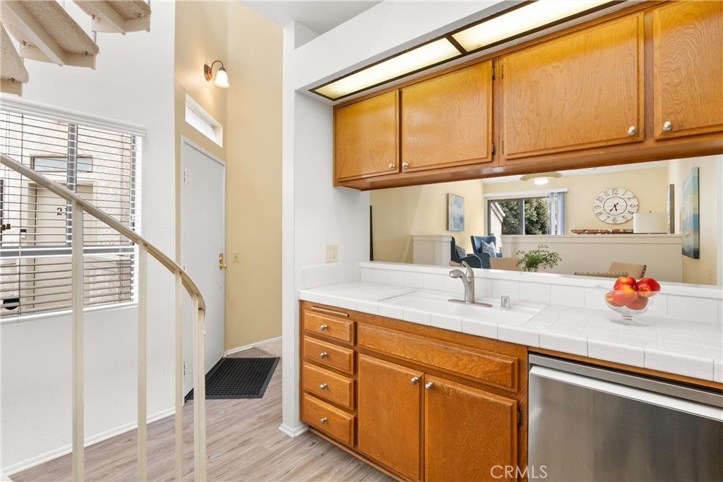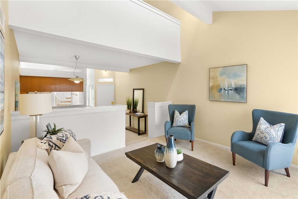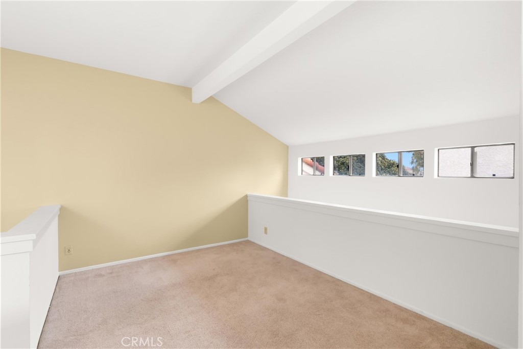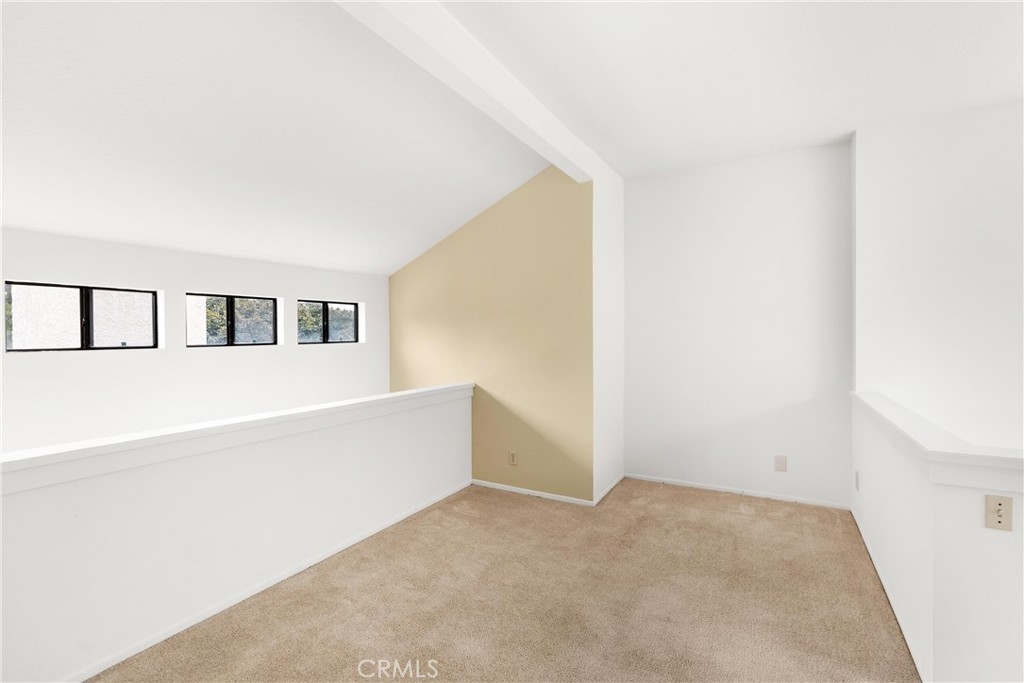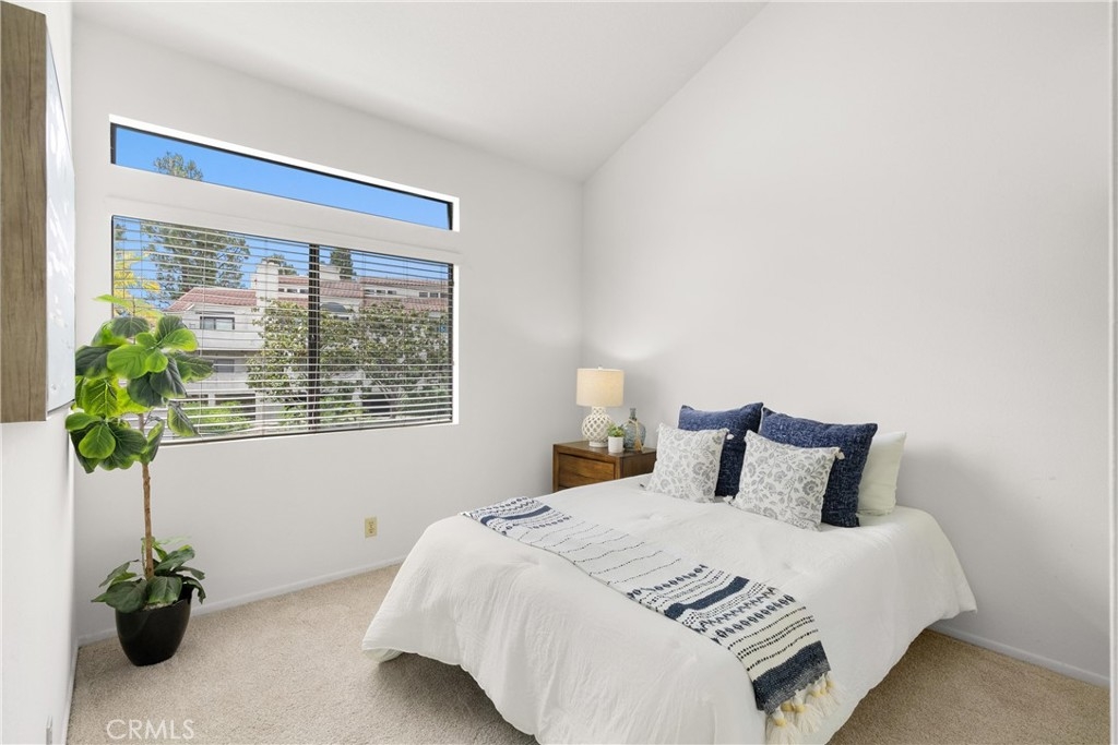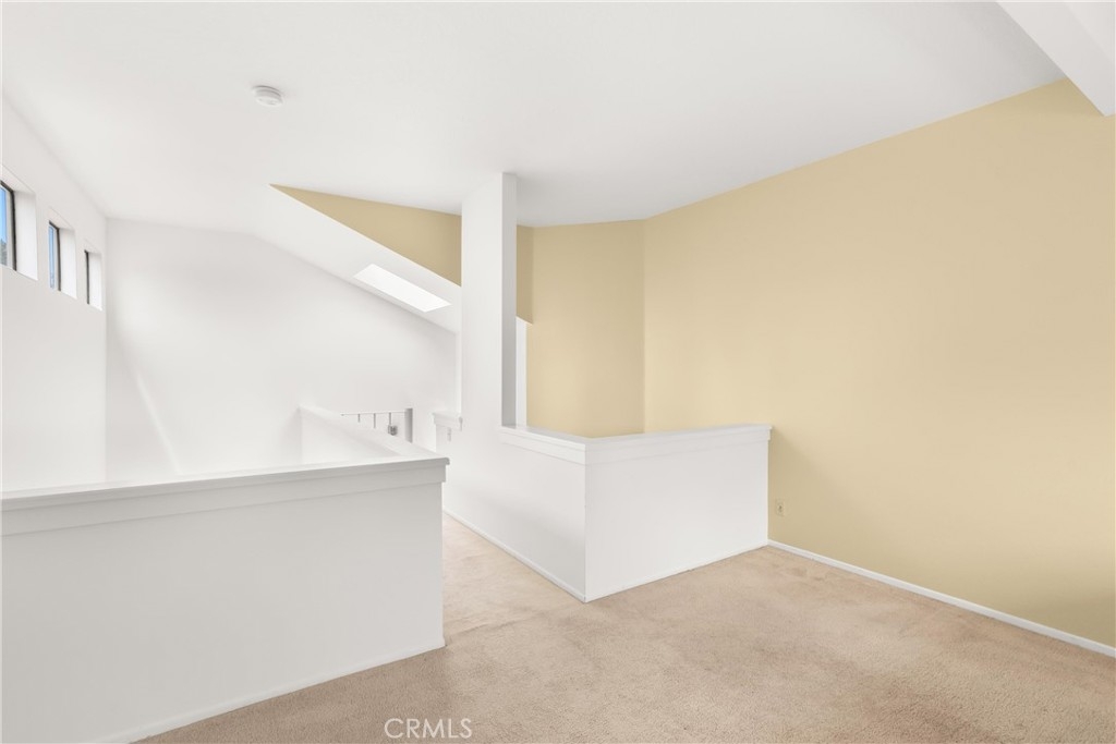 Largest floorplan at Cabo del Mar. This end unit is upstairs and the decks over look the greenbelt in the center of the complex. The loft can be used as a den, 3rd bedroom or office. Kitchen features: stainless range/oven, refrigerator, dishwasher and tile counters. Vaulted ceilings in the living room and master give a feel of space and added light. Primary bedroom has a wall of closets, full size laundry closet and bath with Roman style tub and double sinks. To parking places come with this home. Space numbers 095 & 095. The complex is gated with Night lite tennis courts, inside racquetball room, clubhouse, sauna, spa and pool. All of this and it is only a block to trails at the Bolsa Chica Ecological Reserve and a mile to PCH for easy access to the Huntington City and Bolsa Chica State Beaches.