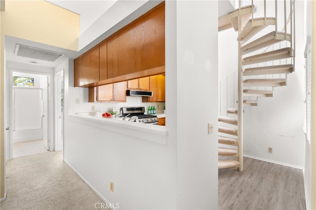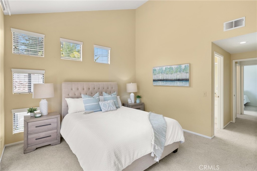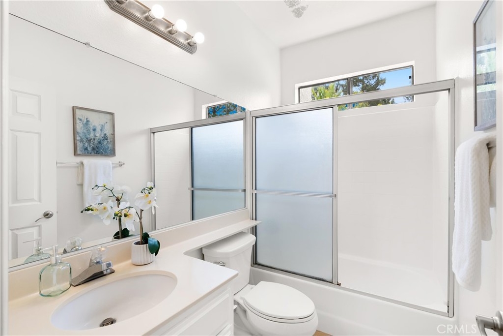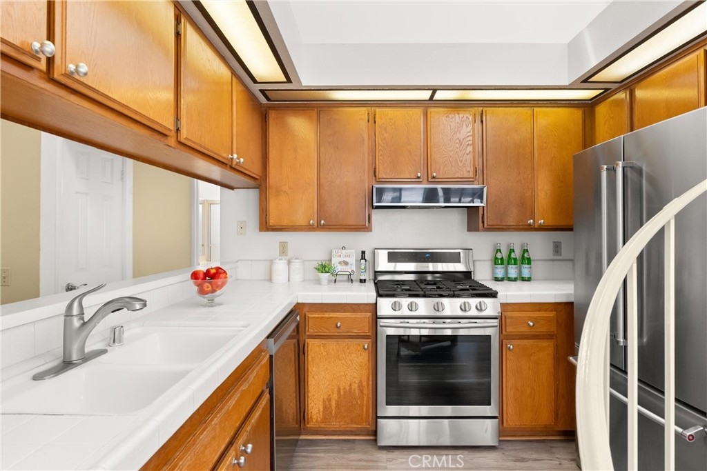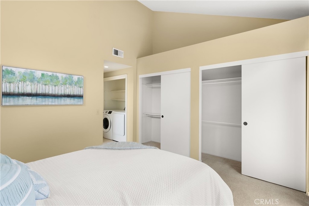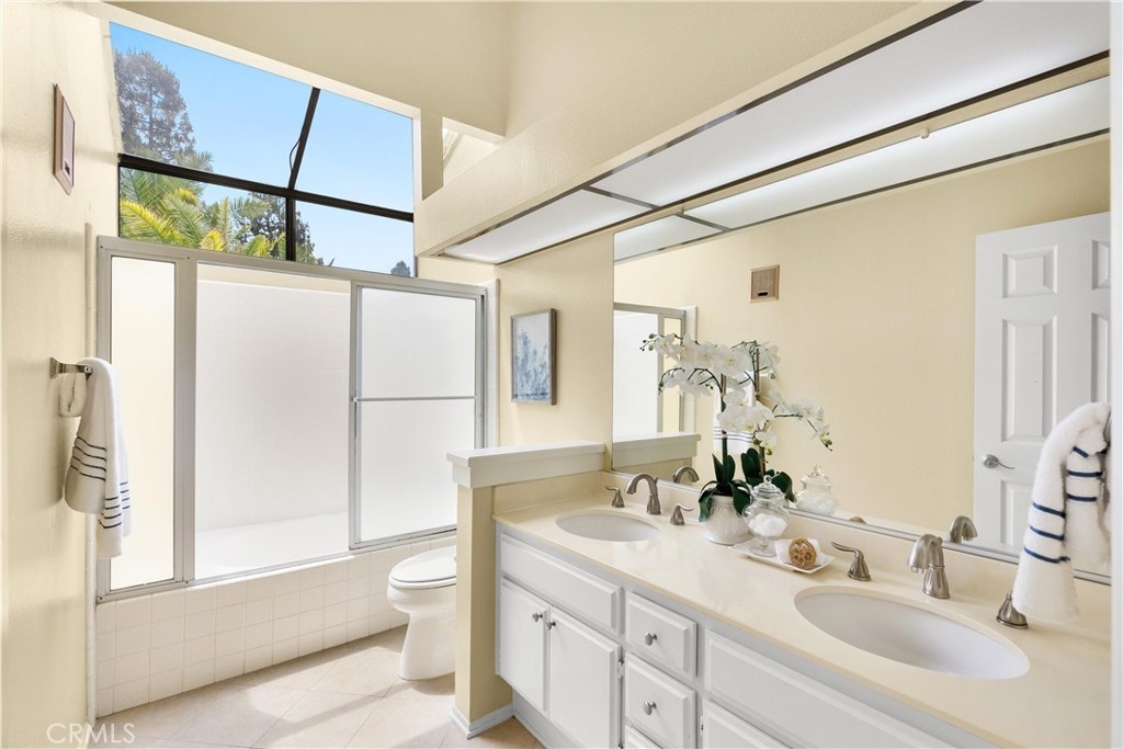 Largest floorplan at Cabo del Mar. This end unit is upstairs and the decks over look the greenbelt in the center of the complex. The loft can be used as a den, 3rd bedroom or office. Kitchen features: stainless range/oven, refrigerator, dishwasher and tile counters. Vaulted ceilings in the living room and master give a feel of space and added light. Primary bedroom has a wall of closets, full size laundry closet and bath with Roman style tub and double sinks. To parking places come with this home. Space numbers 095 & 095. The complex is gated with Night lite tennis courts, inside racquetball room, clubhouse, sauna, spa and pool. All of this and it is only a block to trails at the Bolsa Chica Ecological Reserve and a mile to PCH for easy access to the Huntington City and Bolsa Chica State Beaches.
