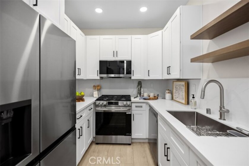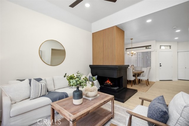 Coastal living comes naturally in gated Cabo del Mar—about a mile to Huntington Harbour and under two miles to the beach. Thoughtfully upgraded with premium finishes, this second-floor, two-level condo showcases vaulted ceilings and a light, open layout. New wide-plank flooring and custom details create a tailored feel. The living room gathers around a sleek, modern fireplace, while the reimagined kitchen features all-new cabinetry, quartz countertops, and stainless steel appliances. Slide open the door to your private balcony for sunset BBQs after a day by the ocean. The spa-inspired bath is fully renovated with dual sinks, statement mirrors, designer tile, and an extra-wide soaking tub/shower combo. Cabo del Mar offers resort amenities—pool, spa, sauna, and tennis—nestled among mature trees, plus ample parking nearby. You’re close to top-rated schools, shopping, the Bolsa Chica wetlands and trails, Rivergate Park, Huntington Harbour, Meadowlark Golf Course, and the beaches of Huntington Beach. With turnkey upgrades, easy maintenance, and a prime coastal address, this home suits first-time buyers, weekend escapes, or anyone seeking a lock-and-go lifestyle. Don’t miss it.