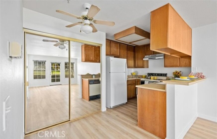 Ground-floor condo located in a desirable, gated 55+ community of only 98 homes in Huntington Beach, just minutes from the beach and local amenities. This home enjoys a peaceful park-front setting, facing Taylor Park with expansive greenbelts and mature trees that provide a serene and private backdrop. The spacious bedroom features a large walk-in closet offering abundant storage and convenient space for a stackable washer and dryer. The bathroom includes a single vanity and a shower-over-tub combination. The light and bright cottage-style kitchen offers Formica countertops, wood cabinetry, and an electric range. This well-established community offers comfortable, low-maintenance living in a prime coastal location. 1 assigned parking space. HOA fee includes water and trash. Please note: Per the HOA's CC&R's, at least one resident has to be 60yrs of age for the downstairs Units.