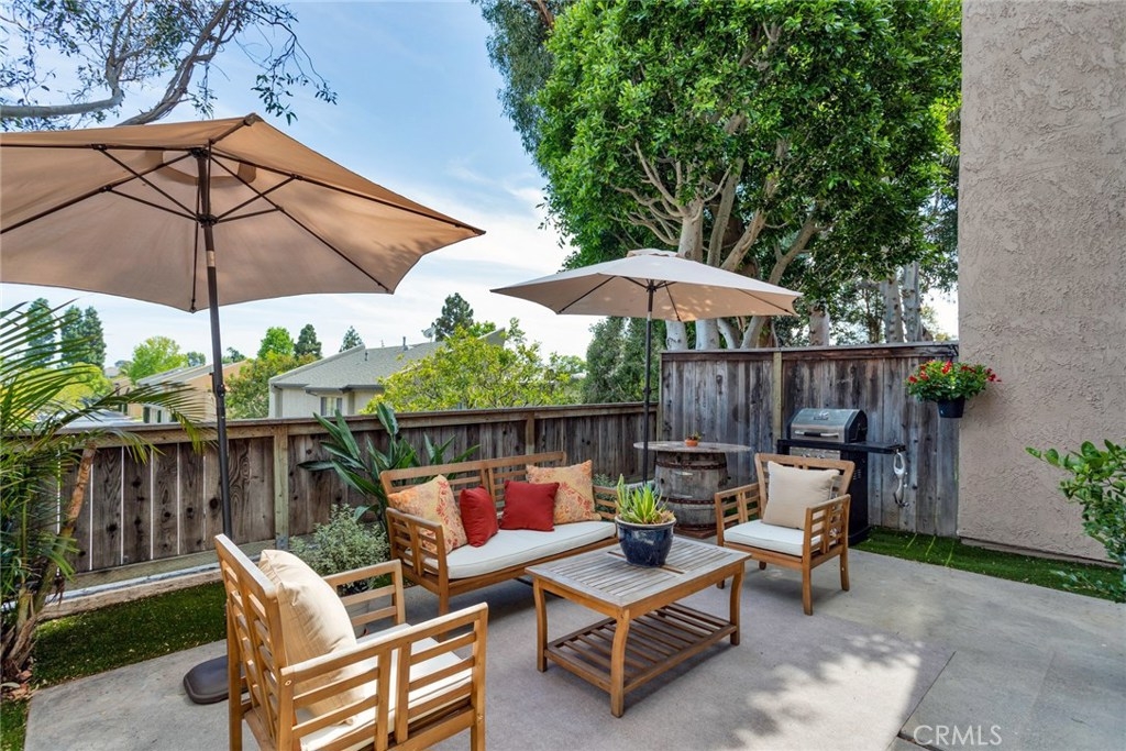 A stunningly bright and airy townhome in the highly sought after development of Huntington Viewpoint offers stylish decor and luxurious living just a few miles from the beach. A private front courtyard and decorative leaded glass front door sets a welcoming tone. Step inside to find a functional living space highlighted by rustic wood floors, Santa Fe doors, large picture windows and a gas burning fireplace. The open concept allows you to cook, eat and entertain with ease. The kitchen has granite tops with decorative splash, updated cabinetry, stainless appliance and a garden window peaking into the courtyard. Ample dining space will host large families. The living room is very spacious allowing for guests to comfortably mingle inside or enjoy conversations on the intimate, open air backyard patio. Sitting slightly above your neighbors, you'll enjoy a private respite from the days activities and a treetop view. Downstairs is completed by a workstation niche and half bathroom. Continuing upstairs, you'll find the master bedroom with vaulted ceiling, plantation shutters, walk-in closet and large oval soaking tub. The Space affords a king size bed as well as a reading space. Secondary bedroom is privately situated with it’s own bathroom. The beautifully maintained HOA boasts sparkling pool and spa, tennis courts plus in a gorgeous public park just across the street. This home has all the makings necessary to start your good life. Info deemed reliable, buyer to verify.