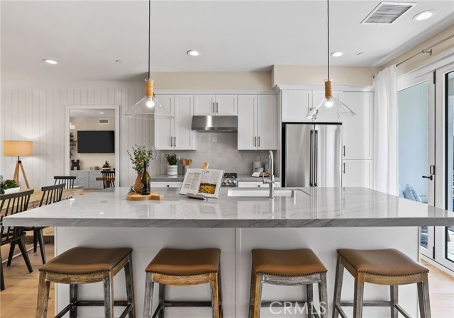 New Release! New construction townhome that has both coastal & modern living can be yours at HB's newest community located near Main & Garfield. 3 bedrooms plus an entry level flex/den/office space perfect for a home studio, gym or music room off the two bay garage. The main great room boasts an open-concept and a stylish kitchen with modern bifold doors that seamlessly open to a large deck, creating the ultimate indoor- outdoor flow. Large kitchen island with ample seating plus a dining area in the great room make this the ultimate space for entertaining. Upstairs the primary room has a walk-in closet and huge shower. Laundry area accommodates full size side-by-side washer/dryer on the second level. These sleek brand-new townhomes are designed for the lock & leave-get the the beach-lifestyle. Solar powered with state of the art technology & finishes. This thoughtfully crafted home features three bedrooms, two and a half baths, and features a gorgeous, private ROOFTOP DECK with sunset views. This townhome combines energy efficiency with contemporary design. Buyers will have the opportunity to customize their home at the Design Center after they purchase. Experience the perfect blend of style, functionality and eco-friendly living all in the legendary Surf City, USA. Huntington Beach offers excellent schools and low taxes - plus no Mello Roos! Photos are of model home