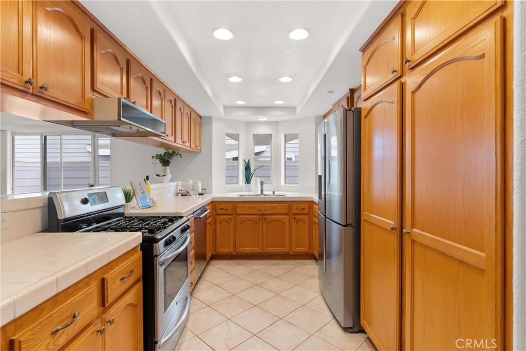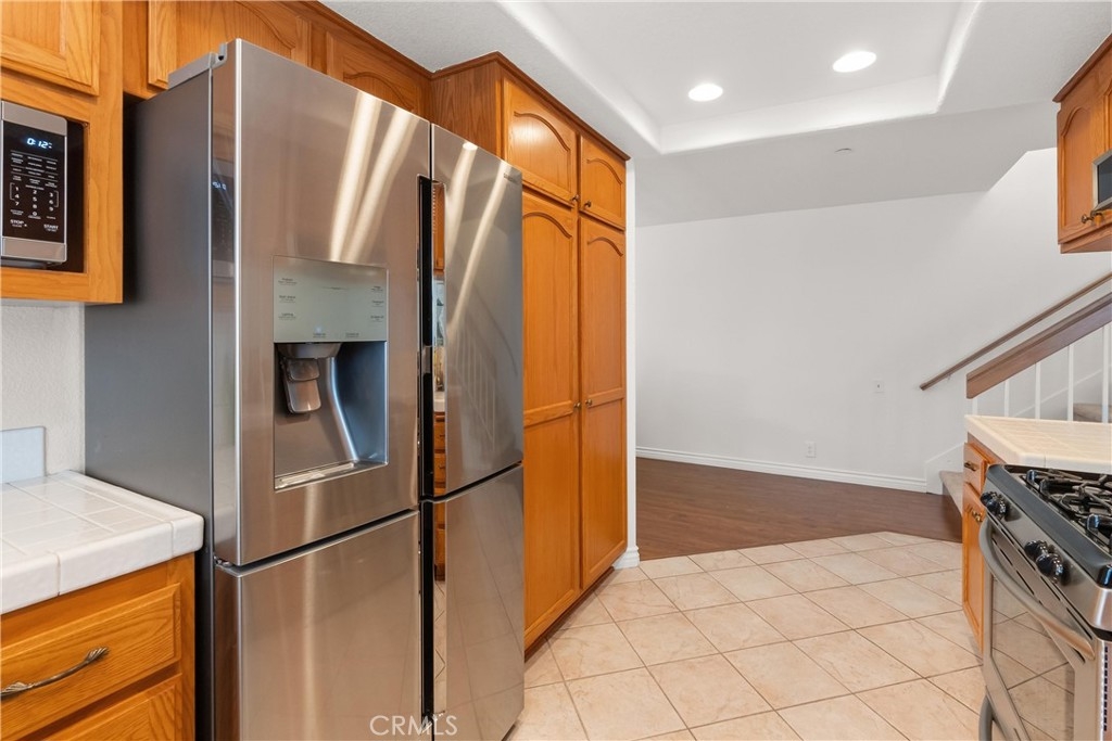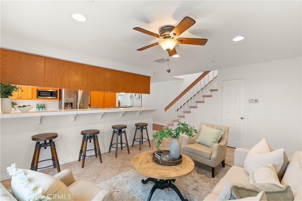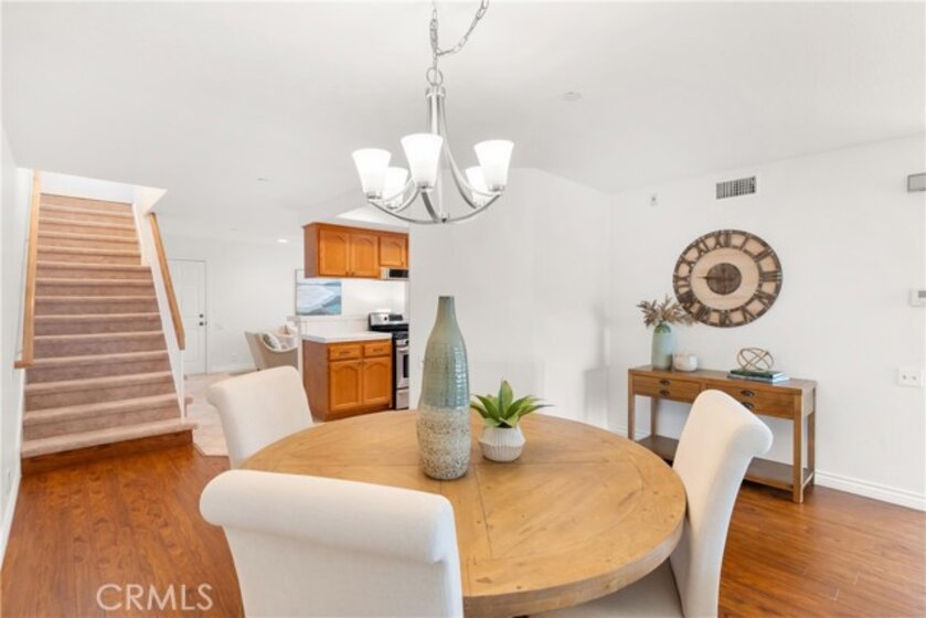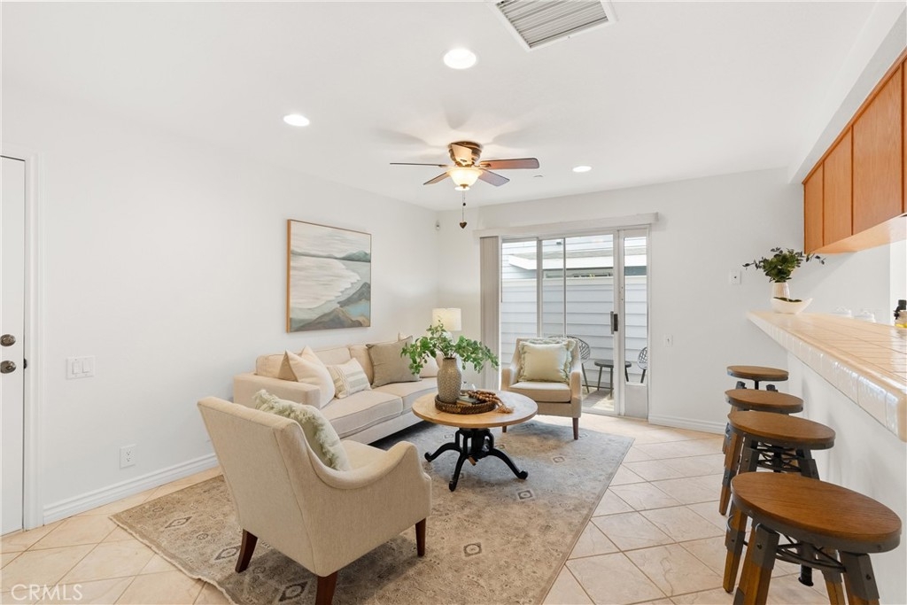 Every mile closer to the coast brings a shift in pace, and just under three miles from the beach, you arrive somewhere special. Tucked inside the gated community of Seawind, this immaculate and thoughtfully updated 1,846 square foot townhome is ready to welcome you home. As an end unit, natural light pours in through the windows, offering both brightness and privacy. A gated, brick lined front patio sets the tone, an inviting place to linger beneath mature shade trees, listen to the birds, and ease into the day. Step inside and feel the continuity of laminate flooring that carries you through the home. The living room is warm and welcoming, anchored by a cozy fireplace with tile accents and a wood mantel, and flows seamlessly into the dining area, perfect for gatherings both planned and spontaneous. The galley kitchen is designed for real living, featuring a generous breakfast bar, abundant cabinetry, a pantry, and stainless steel gas appliances, including a microwave and refrigerator. Just beyond, a separate family room keeps conversations going while meals come together. Slide open the door to a second private patio, ideal for barbecuing, entertaining, or enjoying Southern California evenings under the stars. This is where you host, unwind, and live like a boss. A remodeled powder room completes the downstairs living space. Upstairs, the private quarters include three bedrooms and a conveniently located laundry room. The primary suite is a true retreat, showcasing vaulted ceilings, plantation shutters, a ceiling fan, and a coveted walk-in closet. The ensuite bath features a newer vanity with granite countertops, dual sinks, a soaking tub, and a separate shower. Direct access from the two car garage adds everyday convenience, while ample guest parking ensures friends and family always feel welcome. Beyond your front door, the community offers resort style amenities, including a sparkling pool and a well equipped gym. This is coastal living with comfort, privacy, and ease, where every detail supports the lifestyle you have been working toward. Welcome home.