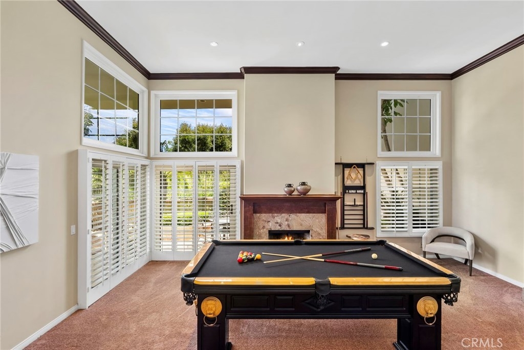 Experience to epitome of luxury living at 19292 Sawgrass Lane, where every details has been meticulously curated to provide an unparalleled luxury coastal lifestyle and comfort. This gorgeous Seacliff on the Greens home is a testament to exquisite craftsmanship and attention to detail, providing a blend of modern Mediterranean architectural design with beautiful finishes. The spacious layout is filled with abundant natural light, creating a welcoming and open-concept environment. This home is highlighted by hard wood floors in the entryway and walnut and burl wood accents throughout. Completely private wrap around patio featuring a hot tub, fountain, BBQ and outdoor shutters and the cozy family room with fireplace and breakfast nook off the kitchen. Upstairs features a large loft/office that can easily be converted into a 3rd bedroom. The suite-sized primary bedroom offers a fireplace and wrap around balcony with views of the Bolsa Chica Wetlands and beautiful sunset skies. Enjoy a spa-like experience in your ensuite bathroom with dual vanities and a wonderfully walk-in, jetted shower. Other amenities include central air conditioning, central vacuum, and an over-sized 2 attached car garage with ample storage. Not only is this the most private unit, but just steps to the pool, a plethora of nearby guest parking, and such a short walk to the ocean near Huntington Beach Dog Beach. 19292 Sawgrass Lane represents a lifestyle that encapsulates the luxury of Huntington Beach living, going beyond the definition of a home. Don't miss the opportunity to own this piece of paradise in one of Huntington Beach's most sought-after neighborhoods.