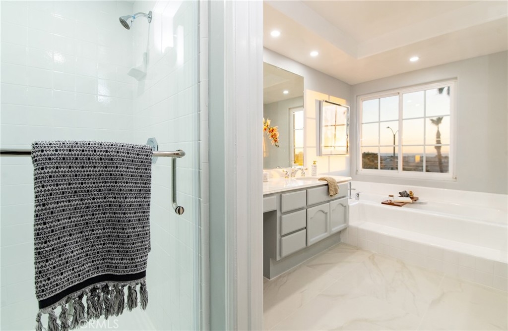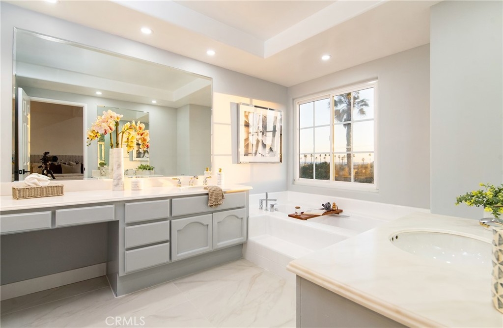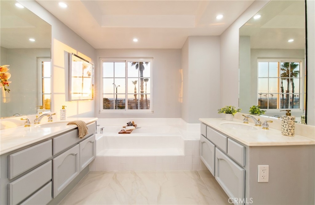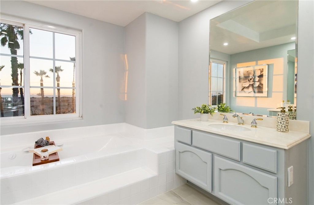 Fantastic, Tri Level, Hard to come by Bright Model 3, interior unit with both Ocean and Fabulous Sunset view. This home is located in the exclusive guard-gated community of Seacliff on the Greens, walking distance to the sands of Pacific Ocean! Tis home offers the perfect balance of style and comfort. 3 Bedroom with almost 2,140 square of living space. Beautiful new hard surface flooring throughout entire home. Custom Paint, ceiling fans, custom light fixtures and other upgrades. Laundry room located on 3rd level. Includes washer – dryer. Master bedroom has a walk in closet and another large closet. It also offers a Jacuzzi tub and a separate shower. Living room has a gas fireplace and next to is a wet bar with built refrigerator. Home has a Ring Doorbell. This is an OUTSTANDNG location which offer an ocean view from the Master Bedroom. Has a newer water heater and a new air-conditioner and new furnace that was replaced about 6 months ago. Unit is located steps away from one of the 3 pools and spas that are offered in the community. Two car direct aces garage. Whether you’re enjoying air shows, fireworks display, parades or simply relaxing this condo puts you in the heart of it all.