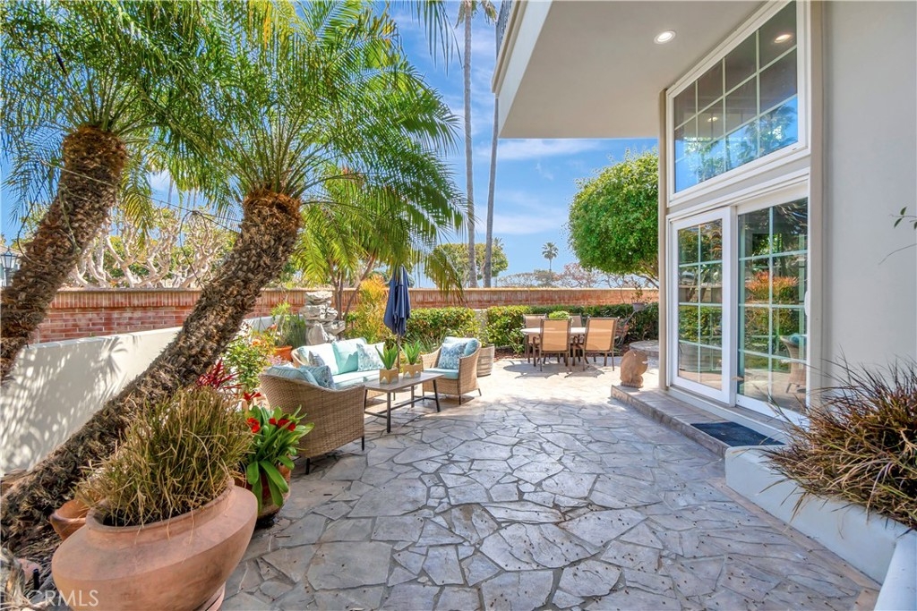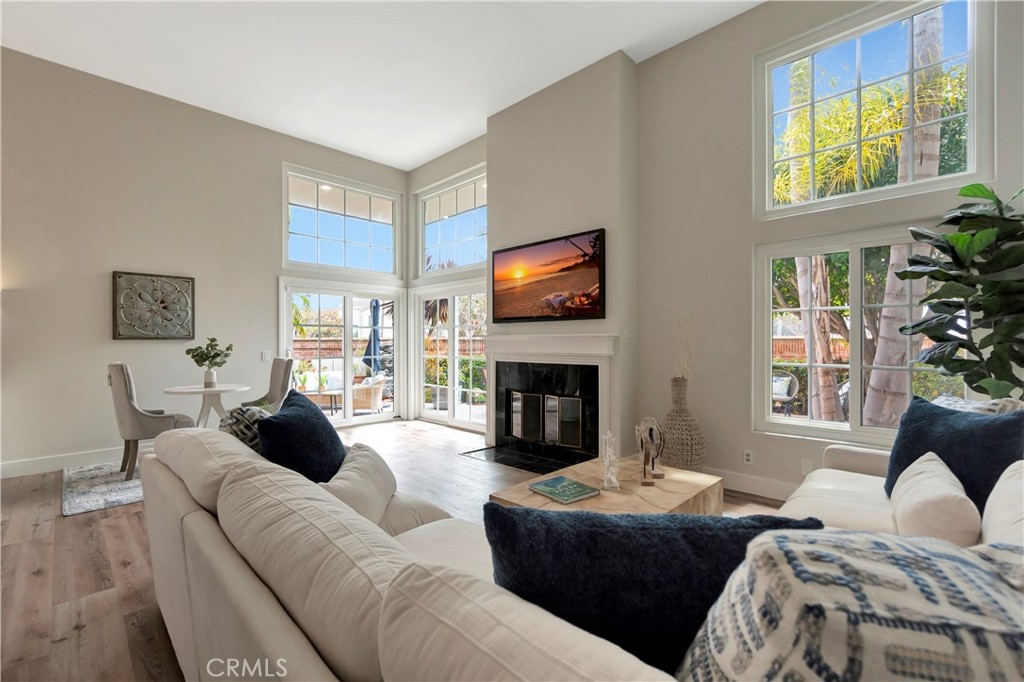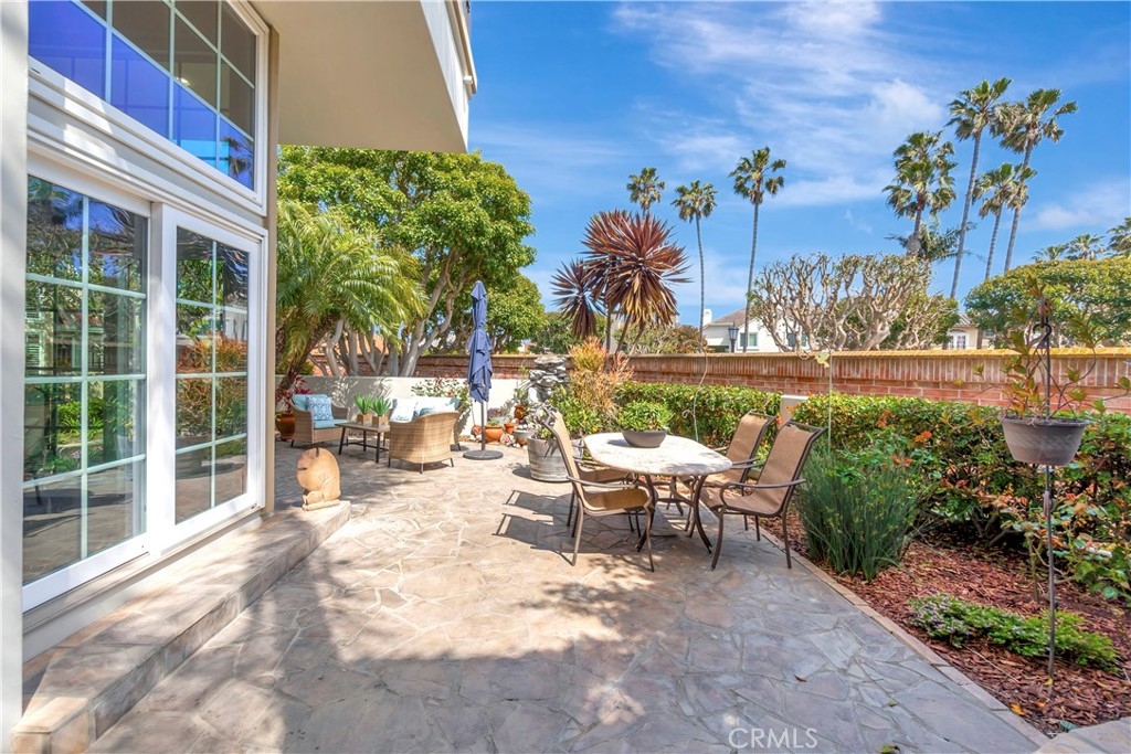 Experience coastal living at its finest in this beautifully updated end-unit townhome with one of/if not THE largest wrap-around private patios in the community, situated in a premium location within the highly sought-after, guard-gated community of SeaCliff on the Greens. Just steps from the pool and moments from the beach, this 400-plan residence offers 3 spacious bedrooms, a versatile loft that can be easily con, and 2.5 bathrooms. The home showcases elegant hard surface flooring, fresh paint, plantation shutters, recessed lighting, ceiling fans, and soaring vaulted ceilings. The expansive formal living room features a custom fireplace, wet bar, and multiple sliding glass doors that open to a large wraparound patio perfect for entertaining. Adjacent to the living area is a formal dining room, ideal for hosting gatherings. The updated kitchen boasts granite countertops, a breakfast bar with seating, electric cooktop, built-in microwave, and dishwasher. Retreat to the luxurious primary suite, complete with its own fireplace, a generous walk-in closet with custom organizers, a wraparound balcony, and a spa-inspired bathroom featuring dual vanities, a jetted soaking tub, and a separate shower. Additional highlights include an oversized attached two-car garage and access to several community pools and spas. Enjoy an easy stroll to the beach or to the nearby SeaCliff Country Club for world-class golf and tennis.