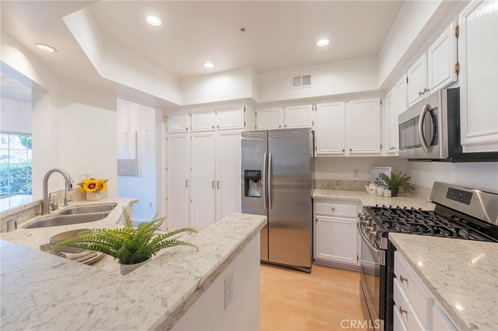 Legend has it, that there is only one unit in all of Seabridge that has interior access to the Garage, Here it is !!! This amazing 2 Bedroom, 2 Bathroom,, Plus Garage is everything you are looking for !!! Interior Location - Open, Bright and Spacious - Pristine Condition, and ready for you ! New Paint - Duel Entry Kitchen with Quartz Counters and Stainless Steel Appliances - Large Bedrooms with lots of Closet Space and Mirrored Wardrobe Doors - Recessed Lighting - Window Shutters - Crackling Fireplace - Garage has upgraded epoxy Floor coating - Seabridge is a Guard Gated Community with 4 Pools, 4 Jacuzzies, 4 Tennis Courts and a Giant Park ! Just down the street from the Beach, Main Street, Huntington Beach Pier, Pacific City, Great Shopping and Restaurants - Truly a higher Caliber of Living !