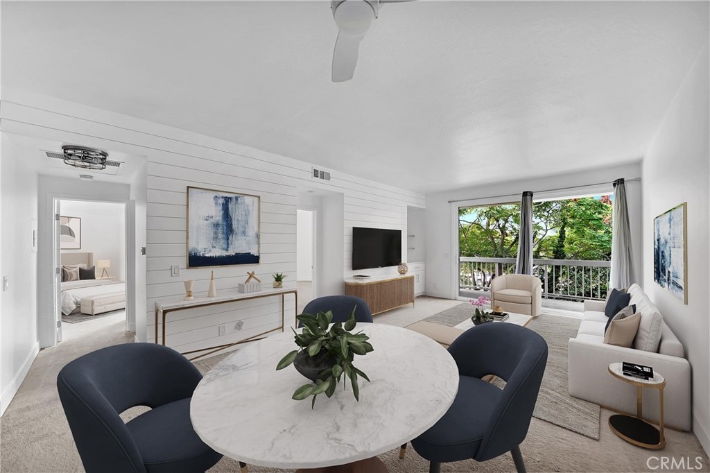Welcome home to this meticulously updated condo in Seabridge Villas, offering the perfect blend of beachy vibes and modern elegance. Located within biking distance of the beach, Downtown HB, and Pacific City, this stylish unit welcomes you with a private entry and bright, inviting design touches. Step inside to discover a kitchen with veined quartz countertops, white shaker cabinets, designer backsplash, stainless steel appliances, a breakfast nook, and a bartop overlooking the spacious living room and dining area. A stacked washer and dryer are discreetly tucked away behind a sliding barn door by the entry of the home. The living room highlights an accent wall with white wood paneling, a charming built-in bar/bookcase, and large glass sliders opening onto your private patio. The secondary bedroom, conveniently located off the living room, features a closet with modern sliding barn doors, while the updated guest bathroom offers a full bath with an oversized shower/tub combo. Your private sanctuary awaits in the Primary Suite, featuring a fully upgraded bathroom with a walk-in glass-paneled shower, a spacious walk-in closet, and its own balcony with storage. This unit showcases luxury vinyl plank flooring in the kitchen and bathrooms, complemented by brand new carpets in the bedrooms and living room. Enjoy the convenience of two assigned parking spots, one covered and just a short distance away from the stairs or elevator. Seabridge Villas is not just a community; it's a lifestyle. Indulge in the amenities of this hidden gem, including 24 hour guard gated entry, multiple pools and spas, a gym, a community center, a dog park, and serene parks with walking trails and water features that immerse you in nature. Truly experience the best of coastal living in this turnkey condo.