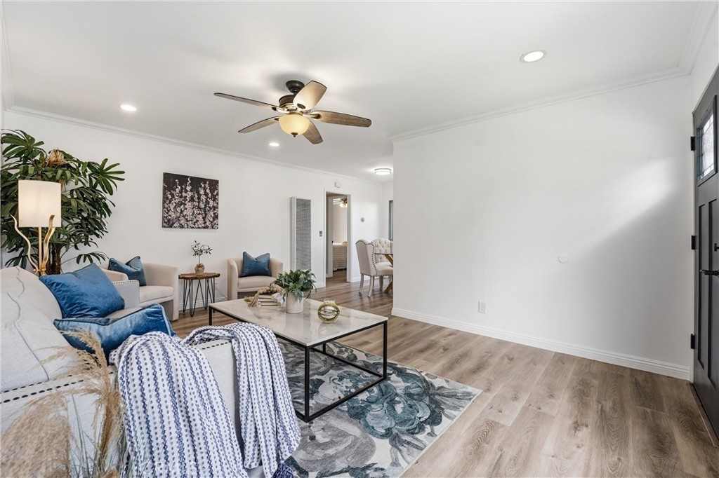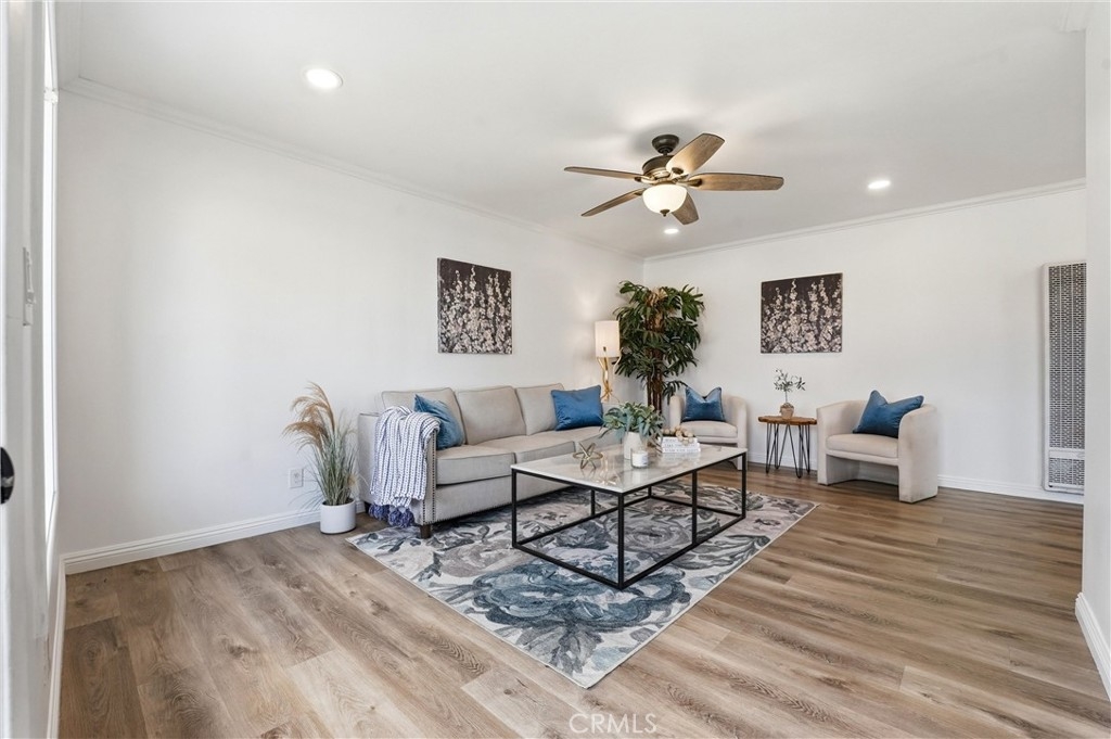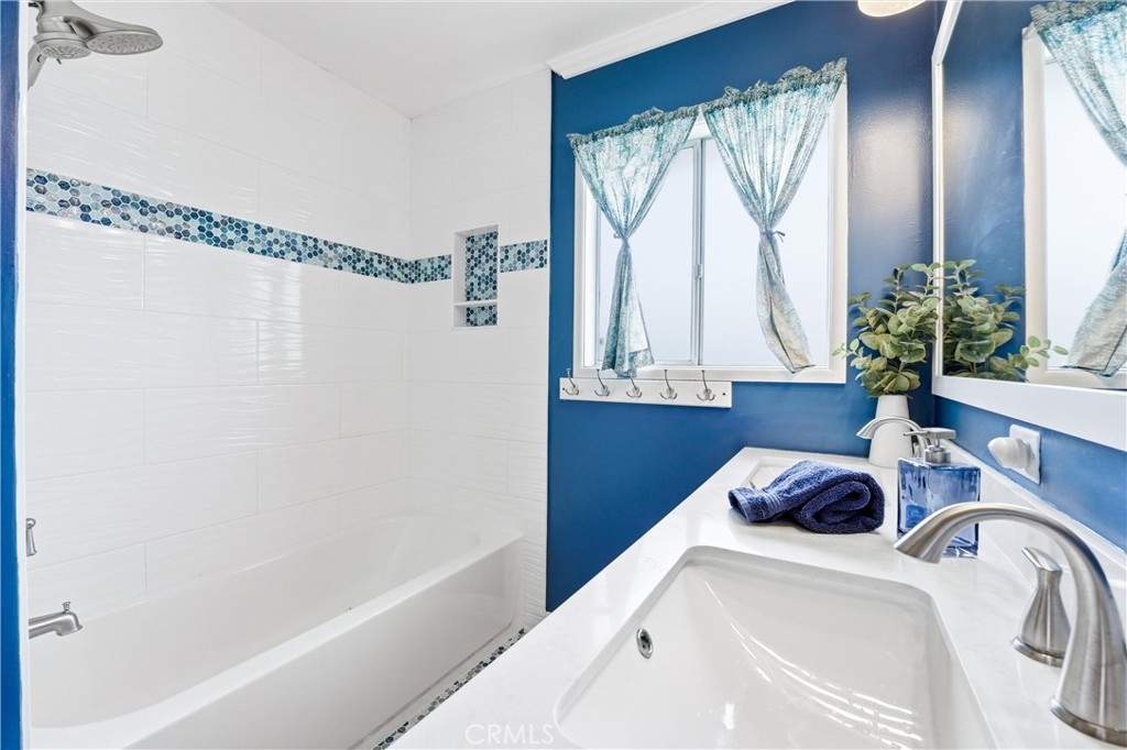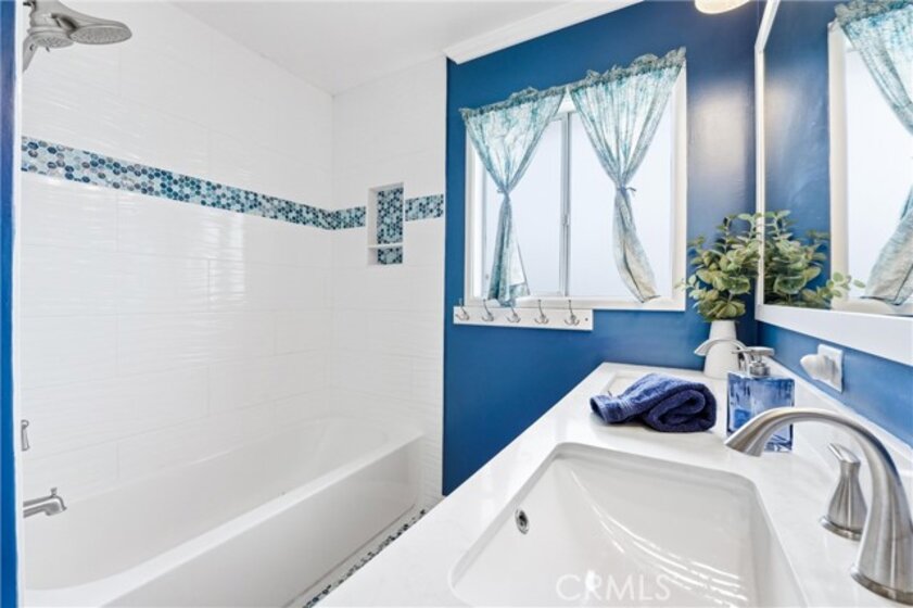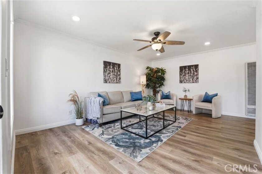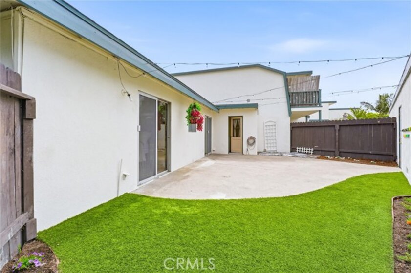 Welcome to 20230 Peach Lane in beautiful Huntington Beach — where comfort, privacy, and coastal living come together in the best way. This beautifully maintained 2-bedroom, 1-bath single-story end unit truly lives like a single-family home, with only one shared wall and exceptional privacy. From the moment you arrive, you’ll appreciate the quiet location and charming curb appeal. Inside, the home offers an open, light-filled layout with ceiling fans throughout and seamless indoor-outdoor flow. Both bedrooms feature sliding glass doors that open directly to the expansive backyard — creating a rare connection to outdoor living you don’t often find at this price point. The remodeled bathroom is thoughtfully designed with a dual-sink vanity, quartz countertops, and a shower-in-tub combination, blending style and functionality. An individual laundry room adds convenience, while the attached two-car garage provides ample storage and parking. Step outside and you’ll fall in love with the oversized backyard — perfect for entertaining, gardening, pets, or simply enjoying Huntington Beach’s year-round coastal climate. There’s even an additional side patio just off the kitchen, ideal for morning coffee or evening dinners under the stars. Located in a highly desirable community offering a pool, spa, lush greenbelts, and neighborhood events, this home delivers the lifestyle buyers are looking for. All of this in a fantastic location close to top-rated schools, shopping, dining, and just minutes from the beach.