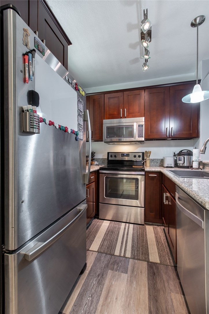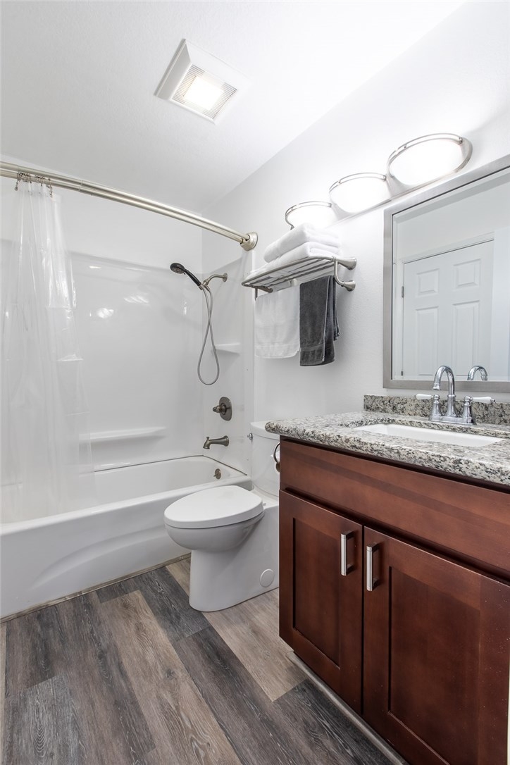 Enjoy this resort-like, gated community of Seabridge in Huntington Beach.Minutes from the beach,shopping,restaurants,parks,downtown & infamous HB Pier.Enter into this sandy feet friendly beach retreat that features newer wood like flooring w/ upgraded padding,new lush carpet,newer dual pane windows & 5 1/2" baseboards.Relish your beautiful upgraded kitchen w/ gorgeous granite counter tops, stainless steel appliances, stainless steel sink, new faucet, tract lighting, range, microwave & stainless steel refrigerator.Walk into the dining area off of the living room, but don't miss this pantry w/ spacious storage. Cozy up on a couch & enjoy the view off the balcony, ocean breeze, tranquil water fountain, lush landscape as well as your very own wood burning fireplace. Natural light throughout. Huge Master bedroom, w/ a spacious walk-in closet & custom built in shelving.Feels like another room. Gorgeous single sink vanity area in the Master suite w/ granite counter top,beautiful mirrors,custom lighting & fixtures.Master bathroom highlights beautiful wood like flooring, a separate vanity w/ an additional single sink, mirror, newer lighting & a bathtub/shower. The entry area features a storage closet as well as an indoor laundry area w/ a washer and dryer unit. As you venture out from your amazing condo experience the community pool,spa,common green areas,fitness center,sauna,tennis courts & more.Parking:1 parking space in covered community garage area.Elevator available to 2nd floor.